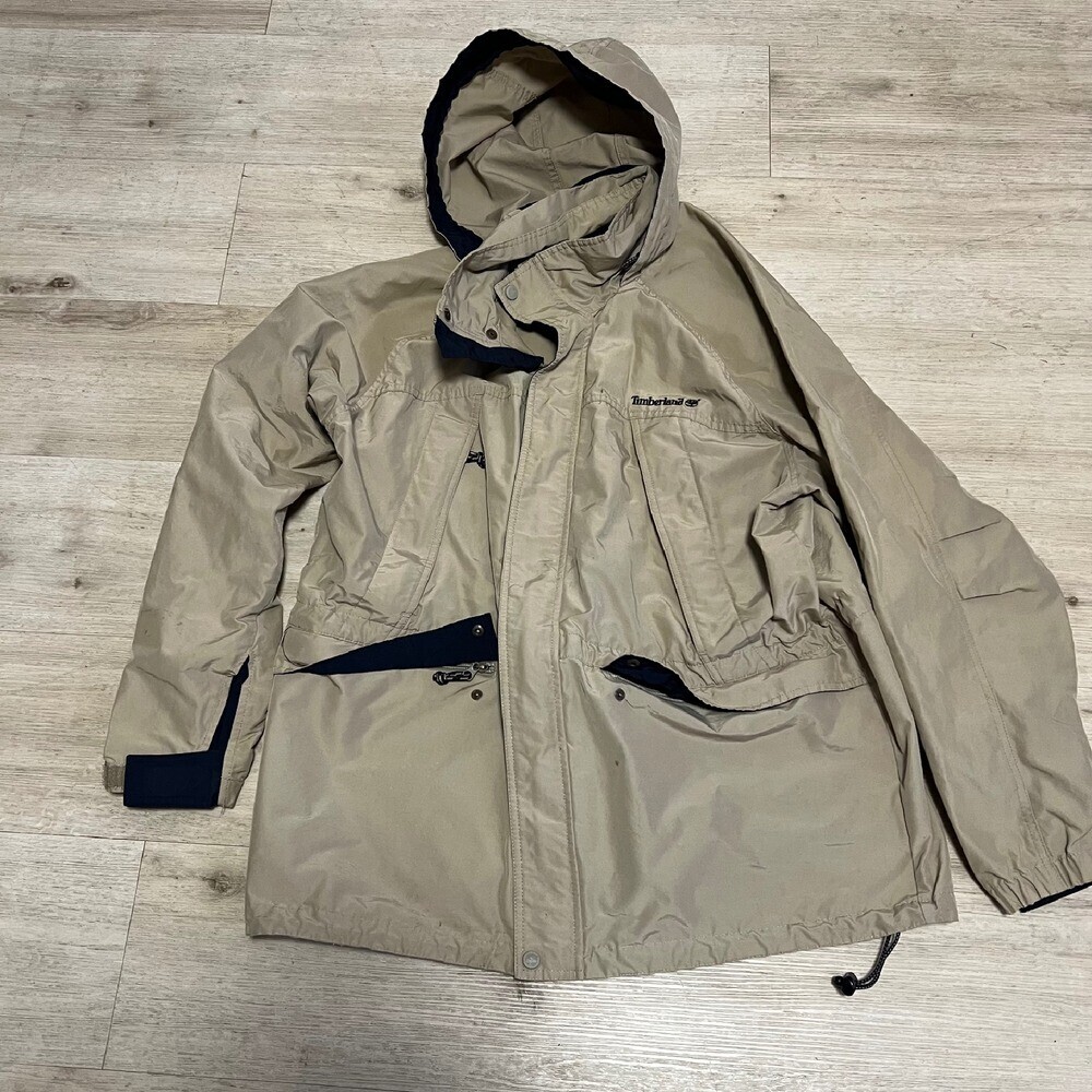 Timberland Jacket Weather Gear Hooded Nylon Jacket 4 Pocket Mens L Vtg 90s