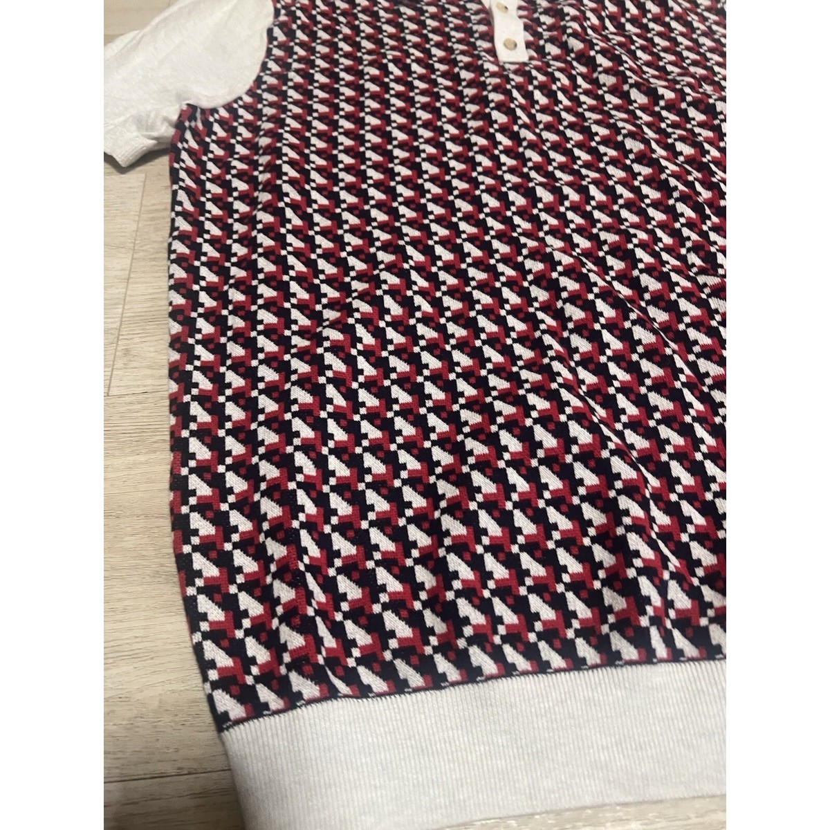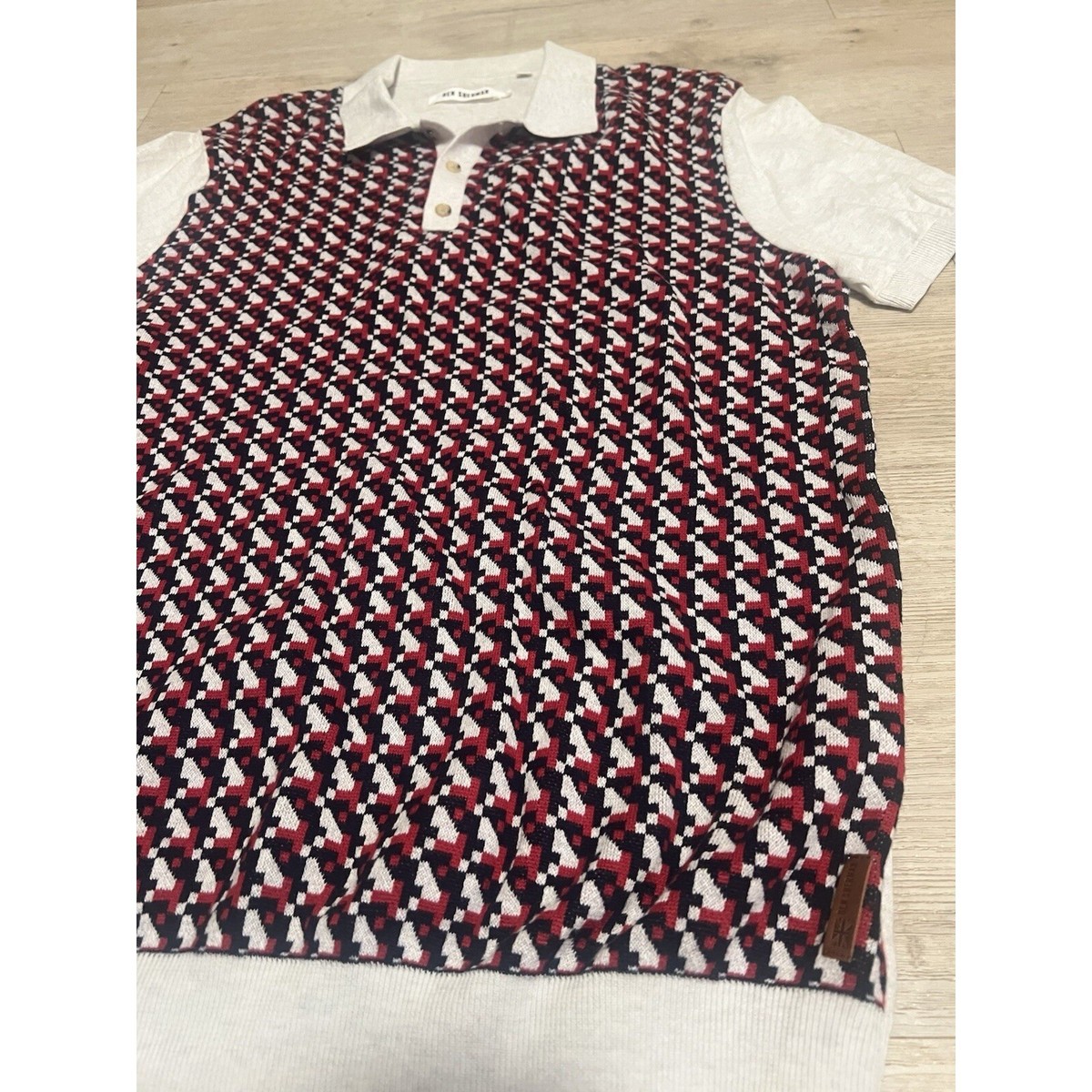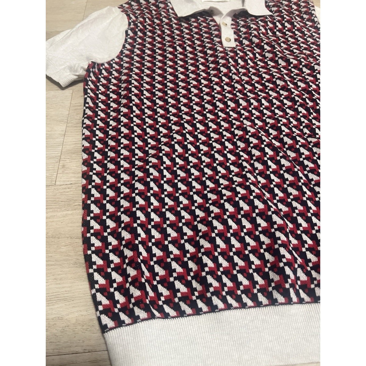 Ben Sherman Men's Retro Geo Polo Size Large White Blue Red Punk Oi! Mod England