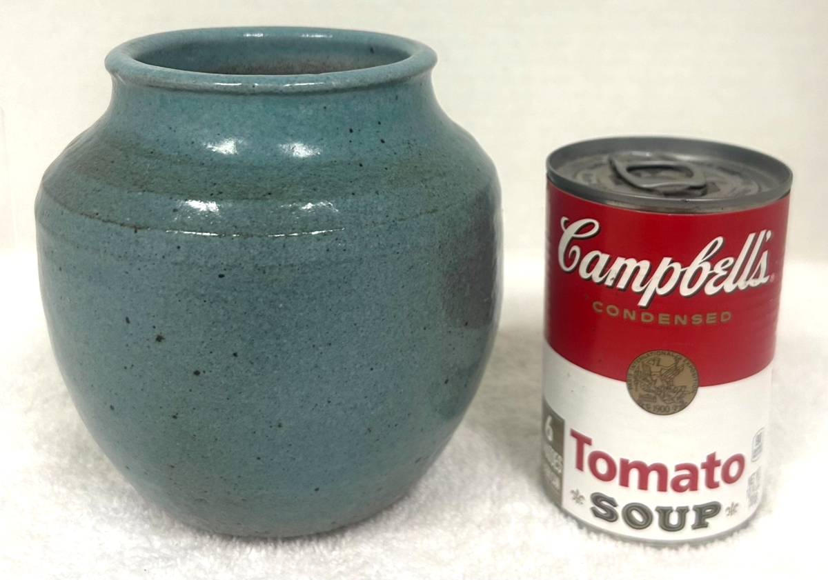 Artisan Studio Art Pottery Handmade Blue Glossy Stoneware Pot Vase Jar 5 1/4". Nice very good condition blue glazed artisan studio pottery stoneware vase pot measures approx. 5 1/4" tall, no damage, some discoloration inside bottom. See pictures.