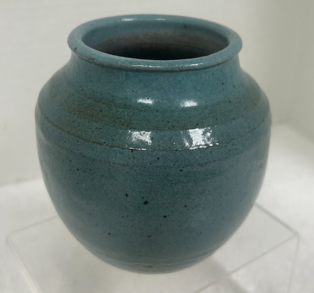 Artisan Studio Art Pottery Handmade Blue Glossy Stoneware Pot Vase Jar 5 1/4"