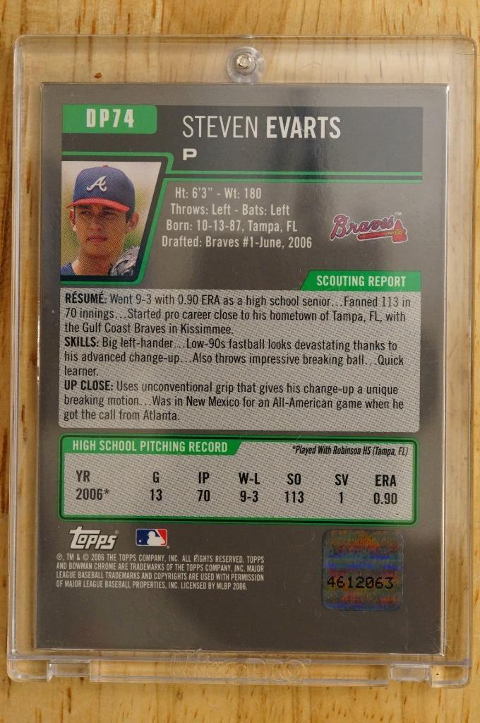2006 Bowman Chrome DP74 Steven Evarts Autograph Card Atlanta Braves. You get the exact card(s) shown. Raw and ungraded. No smoke or pet odors. Present in a one touch.