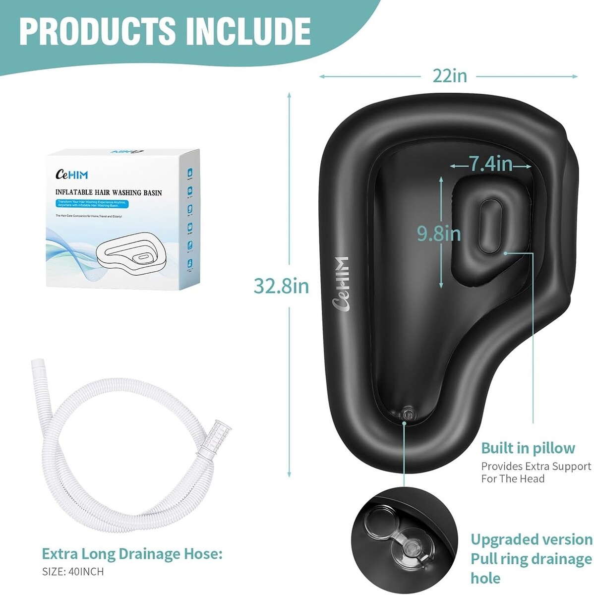 Ergonomic Neck Support: Features a built-in pillow that provides comfort during bedside hair washing sessions, perfect for the elderly, kids, and post-surgery patients.