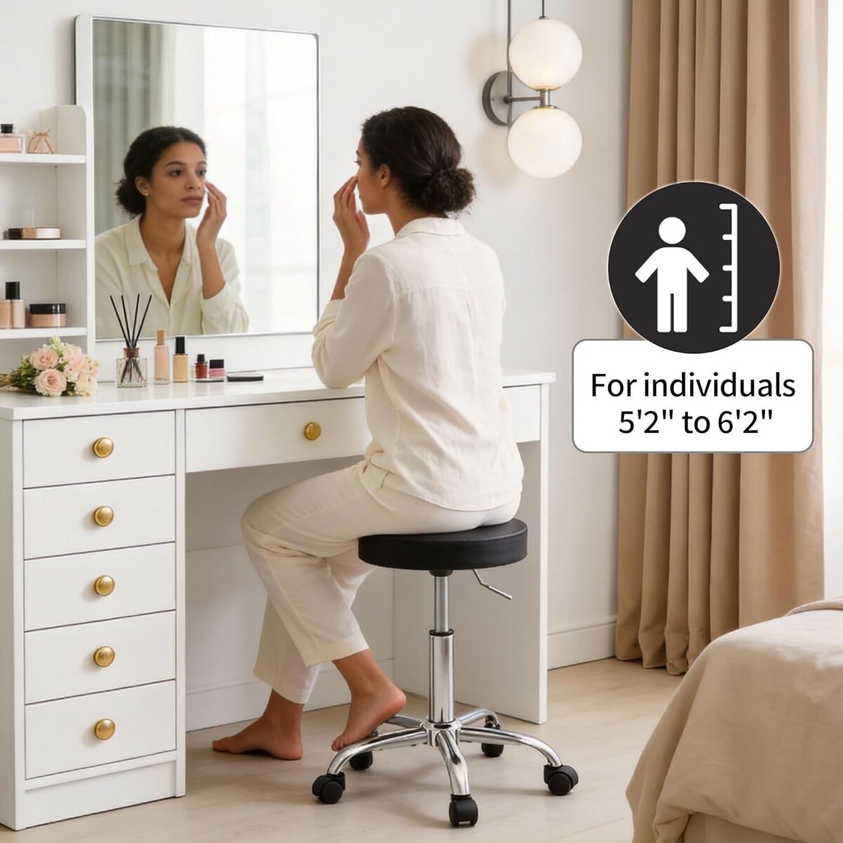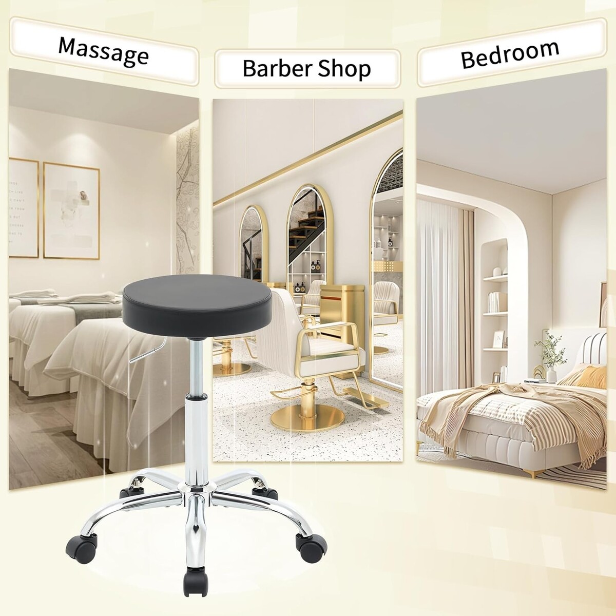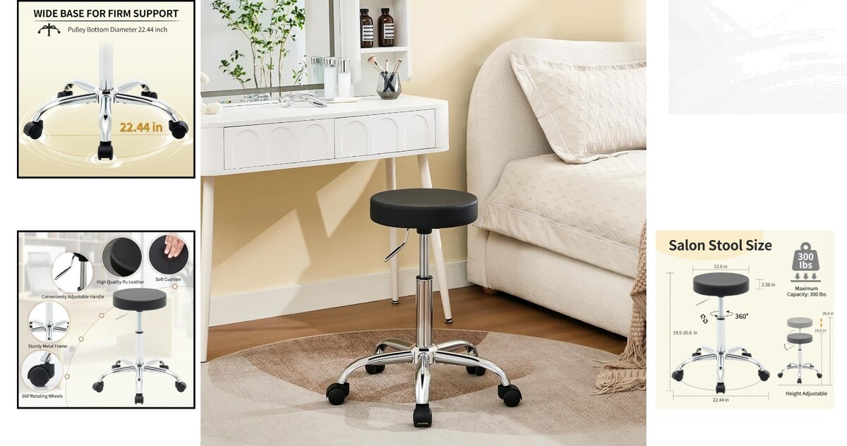 Modern Rolling Chair with Faux Leather Cushion - Adjustable Height 19.5"-26.6"