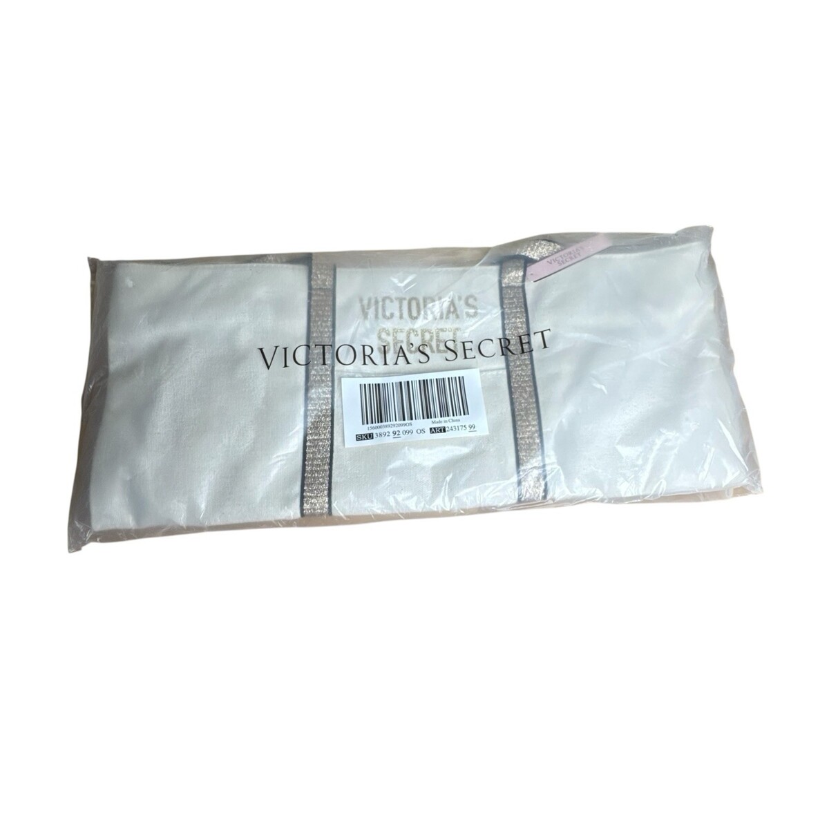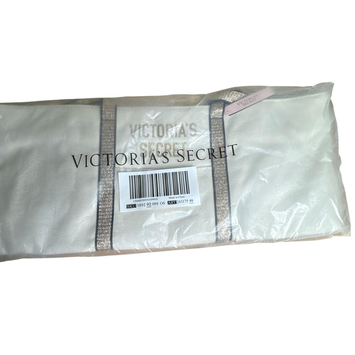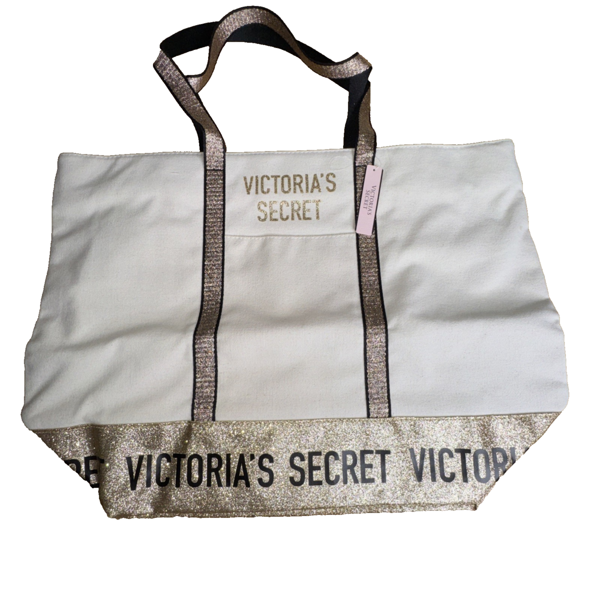 NEW Victoria's Secret GOLD SPARKLE TOTE Zippered Canvas SUMMER WEEKENDER BAG