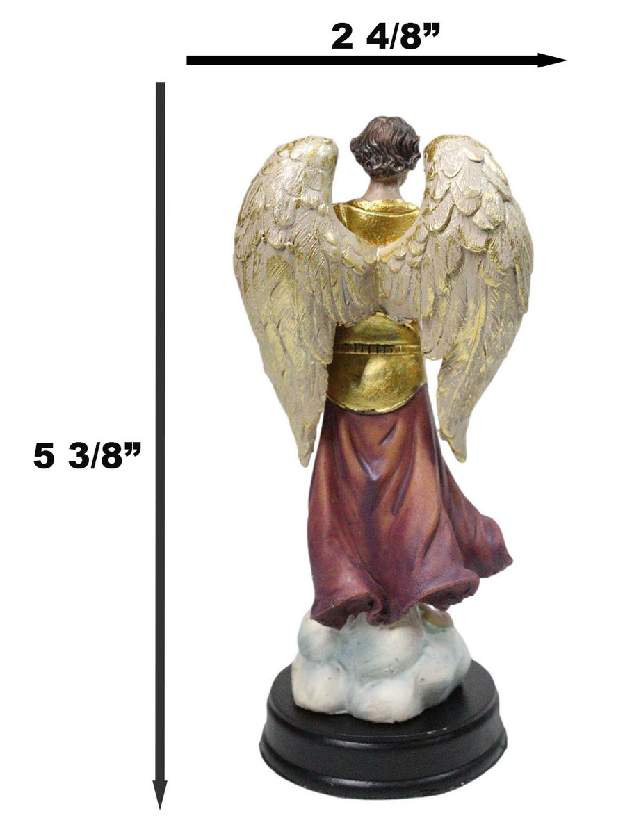 ? This Saint Barachiel The Archangel Figurine measures 5.25" tall, 2.5" wide and 2.25" deep approximately. It weighs about 5 ounces.