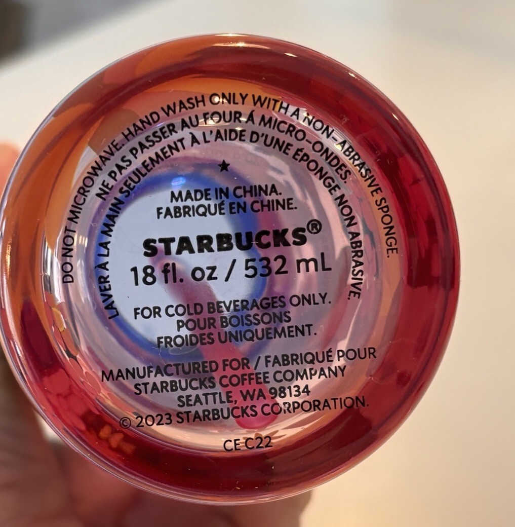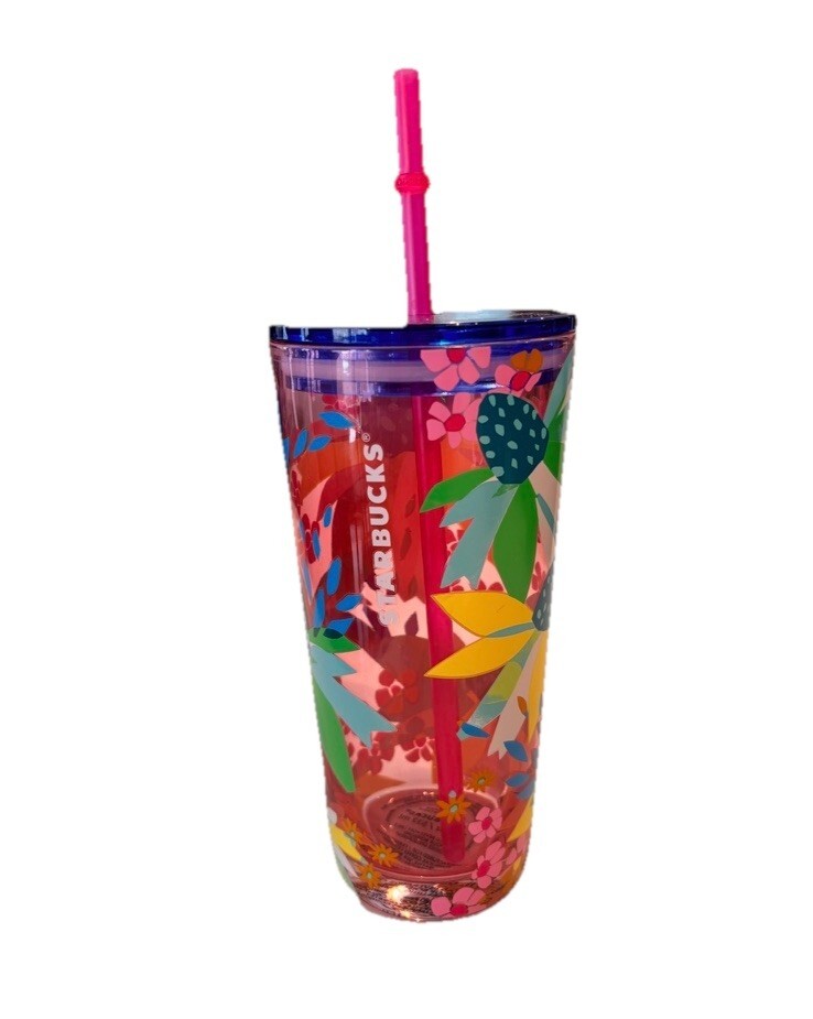 Starbucks 2023 Dancing Coneflowers Pink Glass Cold Drinks blue lid pink straw