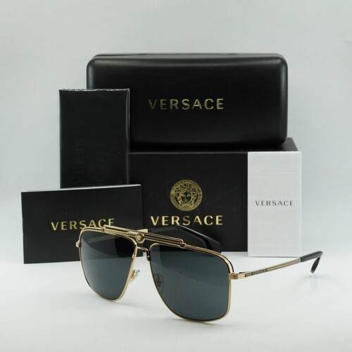 VERSACE VE2242 100287 Shiny Gold/Dark Gray 61-13-145 Sunglasses New Authentic