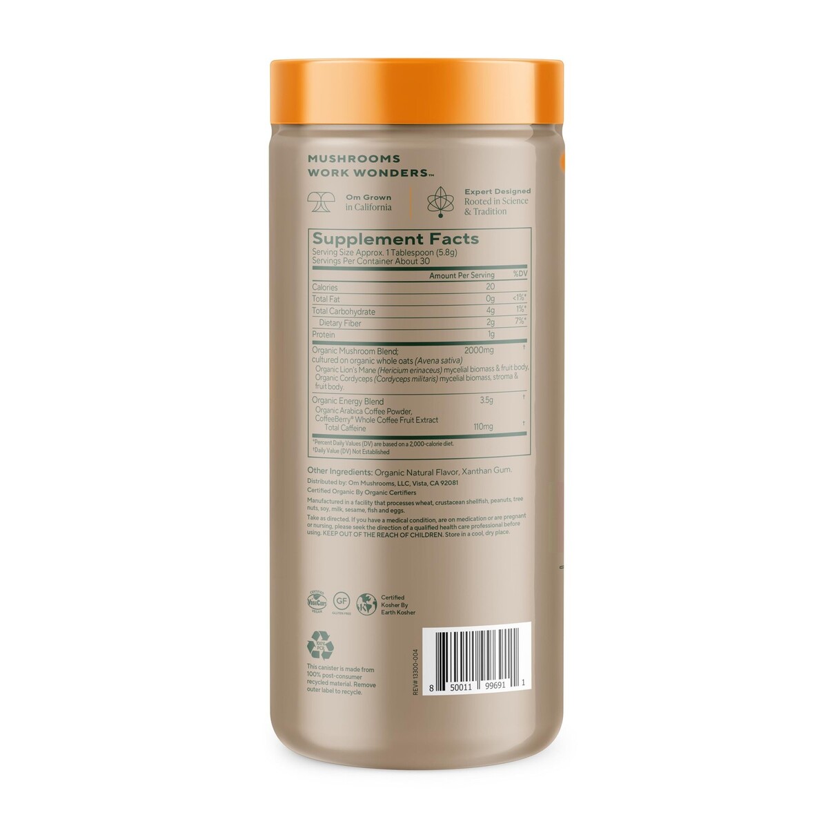 Expiration Date of 6/2026 ? ENERGY, FOCUS AND IMMUNE HEALTH - This energizing latte blend combines organic coffee with Lions Mane, Cordyceps, Reishi, and Chaga mushrooms plus Astragalus to naturally support focus, stamina, and immune health while providing clean and sustained energy. ? 2000MG FUNCTIONAL MUSHROOMS ? Each serving delivers a powerful 2000mg mushroom blend with 400mg beta-glucans to help fuel productivity, mental clarity, and immune defense. ? GREAT TASTING ISTANT ARABICA COFFEE - Crafted with smooth 100 percent organic Arabica coffee for a bold full bodied flavor. Designed for coffee lovers who want the functional benefits of mushrooms without sacrificing the rich satisfying taste of premium coffee. ? 30 SERVINGS PER CANISTER - Convenient canister provides 30 servings. Easy to scoop and prepare at home, making it a cost effective way to support focus, energy, and immunity every day. ? OM MUSHROOMS: We grow, dry, and mill our mushrooms in Southern California, ensuring every product is proudly USA grown the Om way. Our powders, capsules, beverage mixes, and gummies are USDA Certified Organic, Non-GMO, gluten free, vegan, paleo friendly, keto friendly, and kosher. Each batch is thoroughly third-party tested to confirm purity and potency. Explore our complete line designed to support daily health, focus, clarity, energy, immune defense, and restful sleep ? your reliable daily allies for both body and mind.