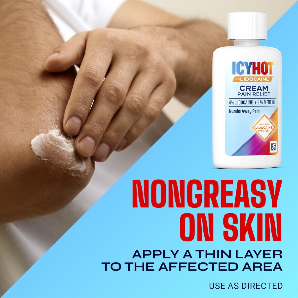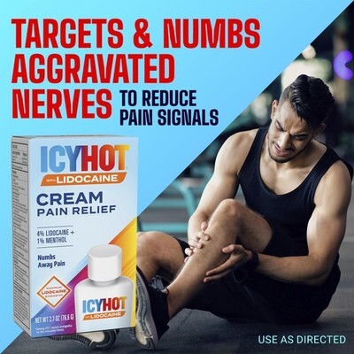 Expiration Date of 3/2026 ? INCLUDES: One (1) 2.7-oz. tube of Icy Hot Max Strength Pain Relief Cream With Lidocaine Plus Menthol ? NUMBS AWAY PAIN: Icy Hot Lidocaine Cream desensitizes aggravated nerves to temporarily relieve minor pains associated with foot pain, back pain, muscle pain, knee pain and arthritis pain ? FAST ACTING LONG LASTING: This pain cream penetrates to the nerves for quick relief in minutes that lasts for hours ? NON-GREASY: Apply non-greasy Icy Hot Pain Relieving Cream With Lidocaine Plus Menthol to the affected area every 6-8 hours; do not exceed 3 applications in a 24-hour period ? AMERICA'S TOPICAL PAIN RELIEVER: Icy Hot is the number-one topical pain relief brand among OTC topical analgesics