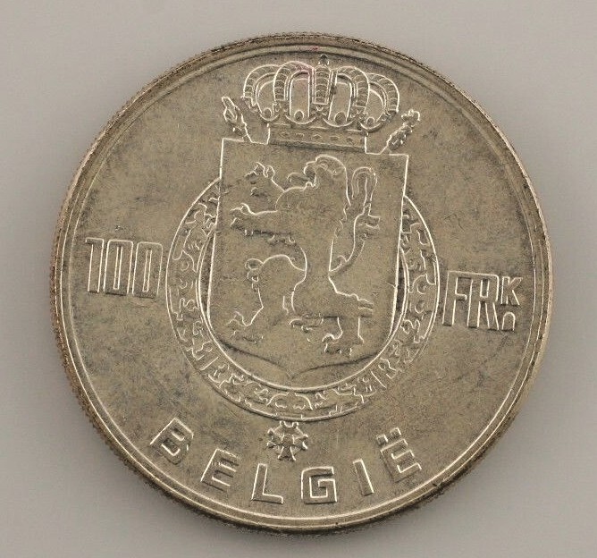 1951 Belgium 100 Francs Coin
