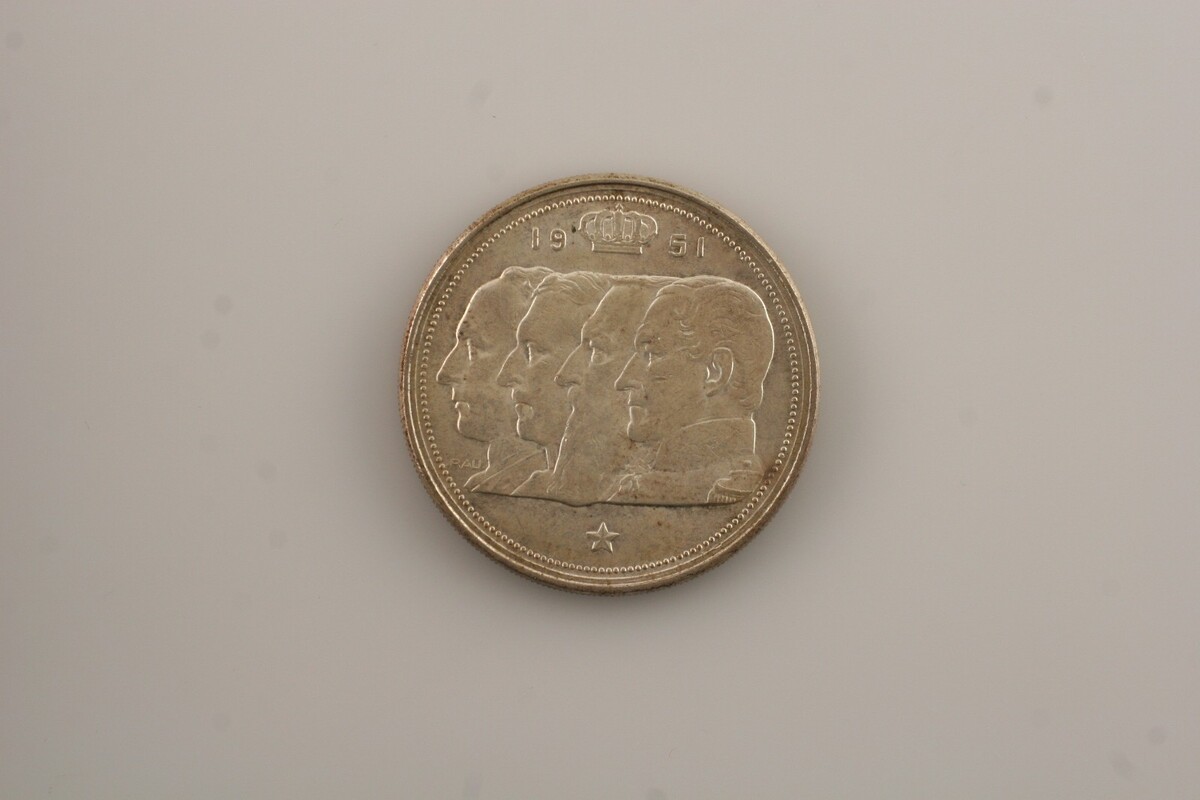 Reverse: Conjoined heads left of Leopold I, Leopold II, Albert I and Leopold III, left, Crown divides date at top, star at bottom