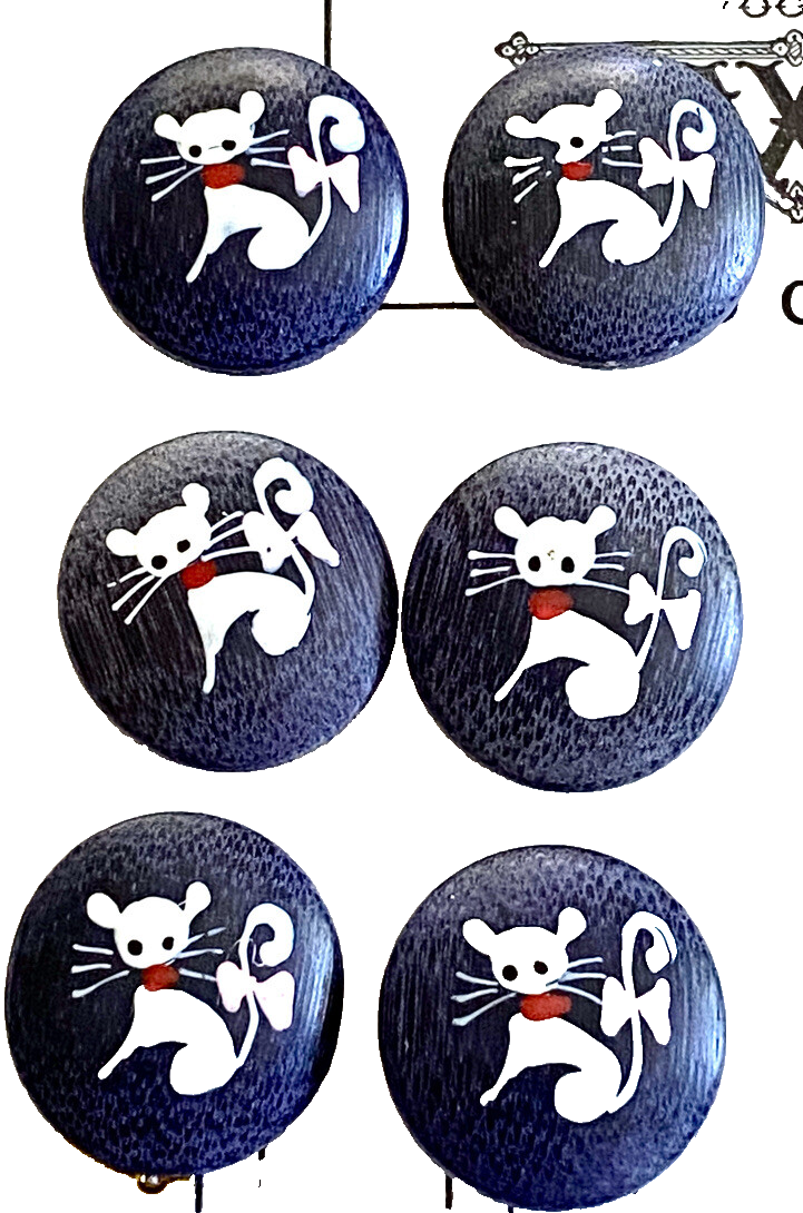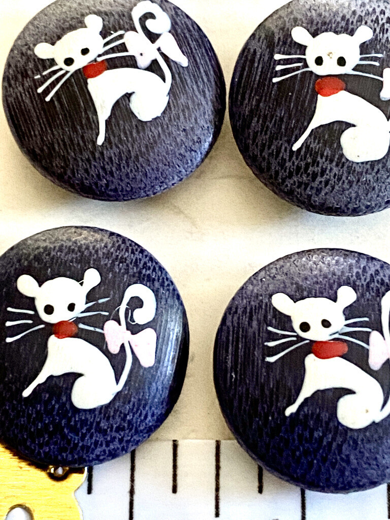 Vintage Buttons 6 Wooden Hand Painted MCM Black White Cats Kittens 3/4" Shank