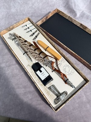 Feather Pen, Nibs 5 Pcs, Inkwell, Vintage Stand |
