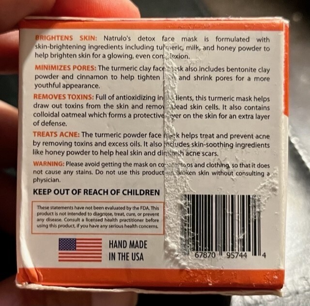 Natrulo Turmeric Face Mask - Skin Brightening Mask/Natural Acne Treatment - NIB!