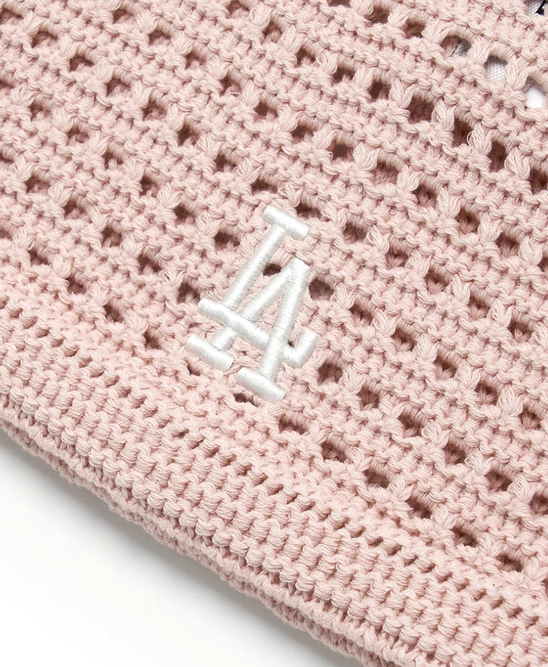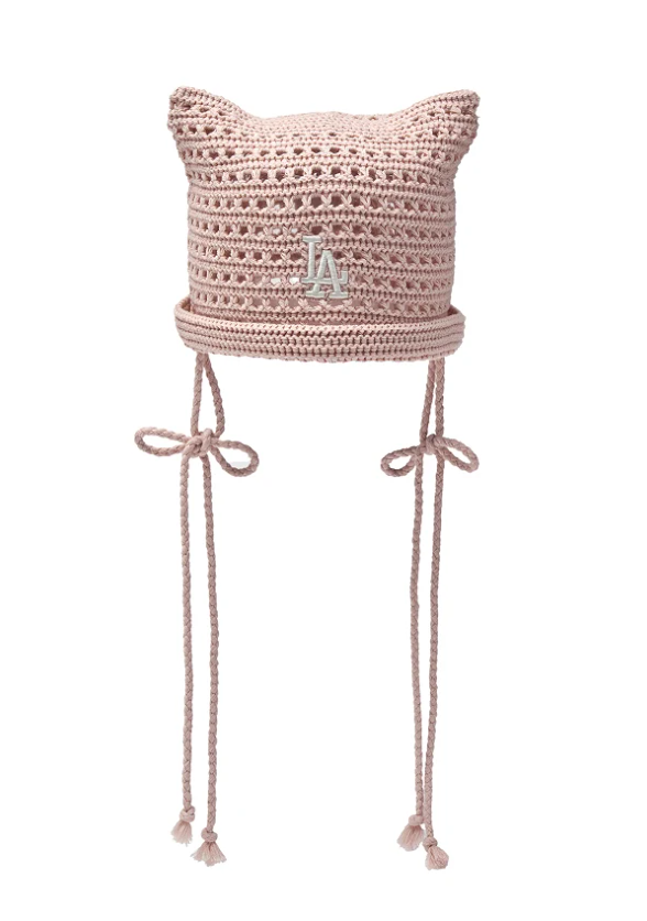 MLB Korea Summer Ribbon Meow Cat Beanie Hat LA Dodgers Casual Lifestyle Coral
