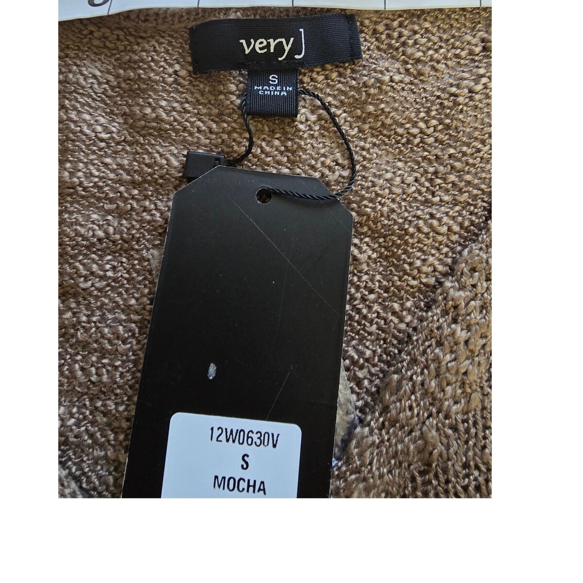 Very J Womens Mocha Brown V-Neck Short Sleeve Textured Knit Top 12W0630V Small