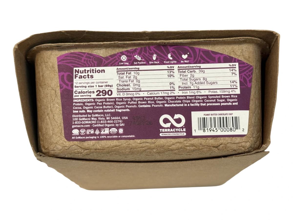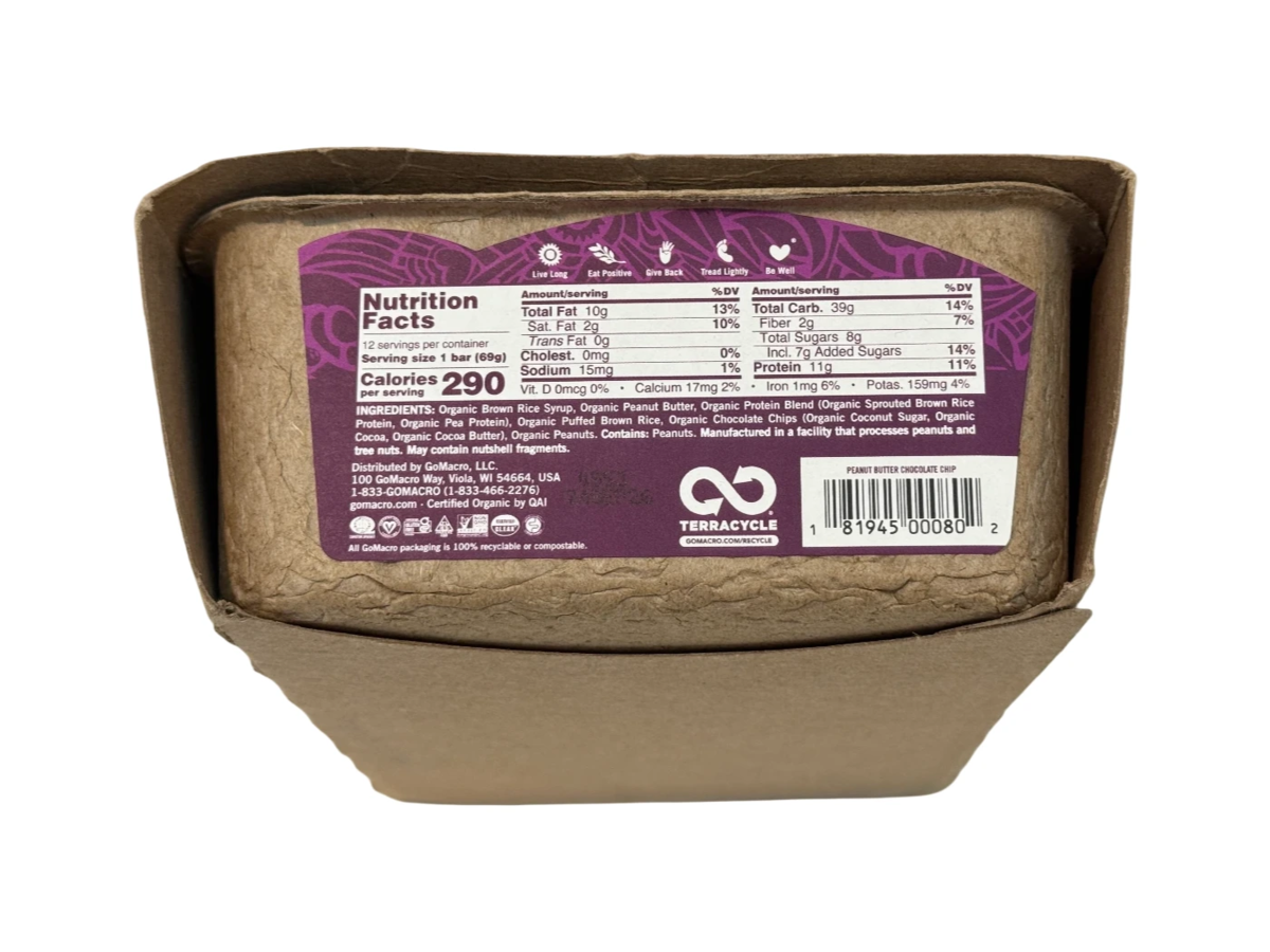 Gomacro Protein Bar (12) 2.4 Oz Peanut Butter Chocolate Chip USDA Organic