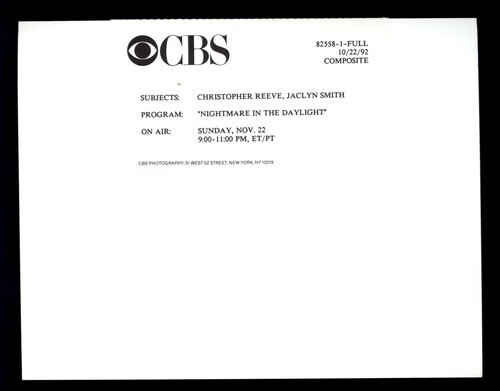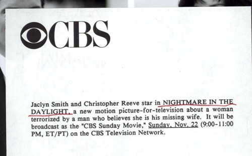 7 x 9 press photo JACLYN SMITH CHRISTOPHER REEVE in NIGHTMARE in the DAYLIGHT