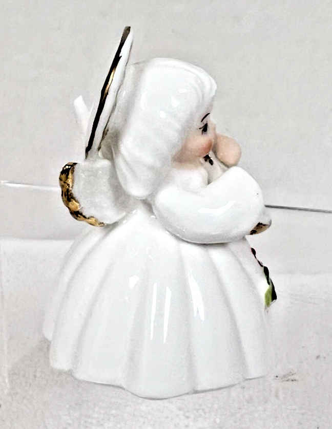 1982 Christmas Angel w Holly & Guitar George Good Porcelain 2 3/4" SWEET