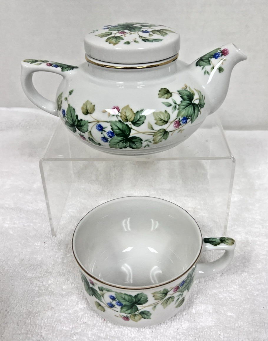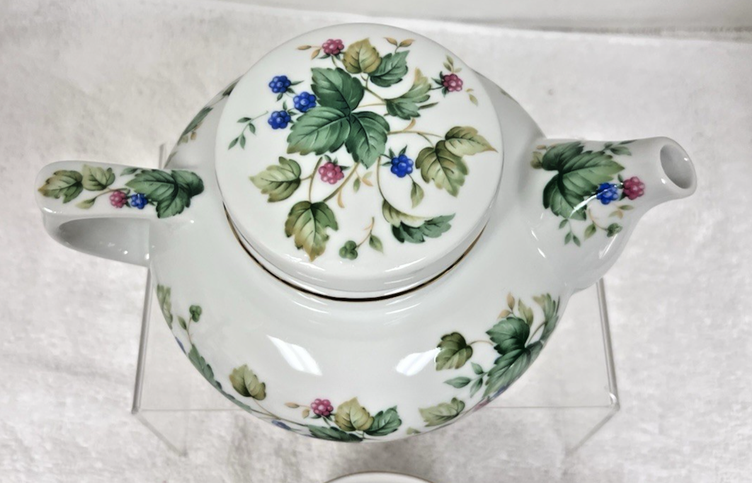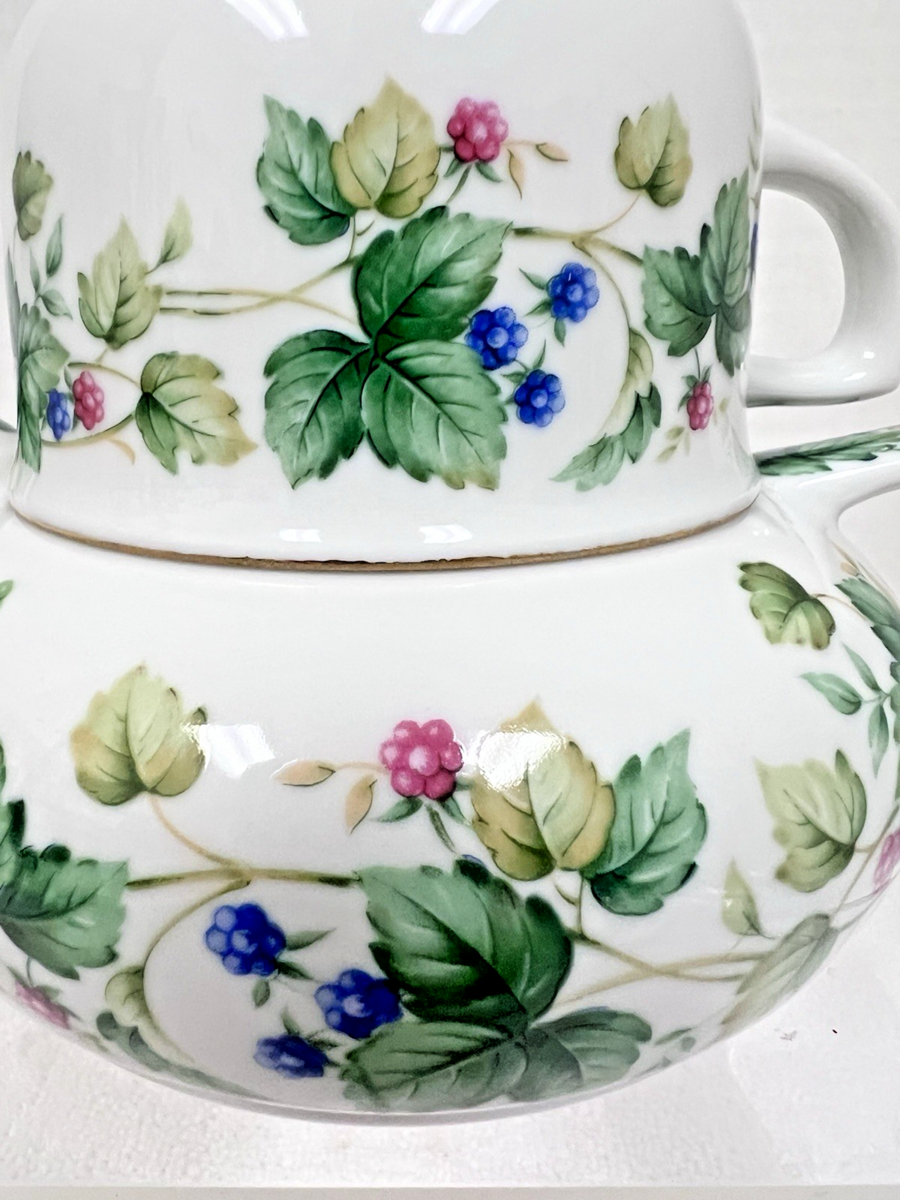 Andrea Individual 2 Cup Teapot & Lid Vineyard by Sadek w Cup Berrys & Flowers