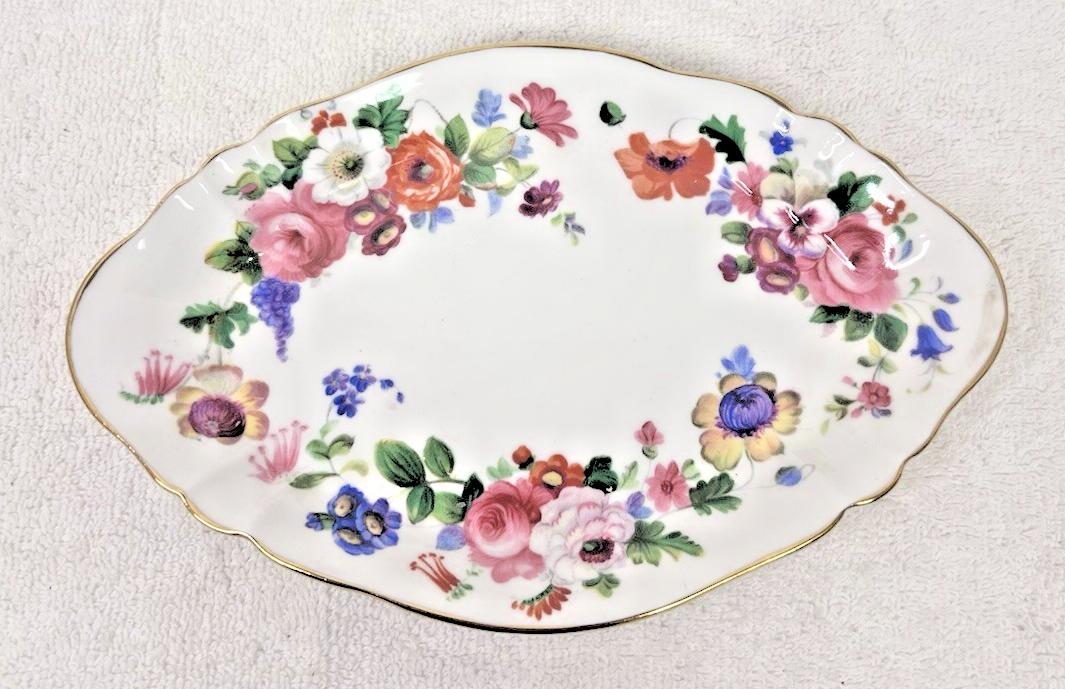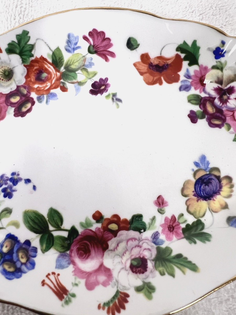 Hampton by GROSVENOR Floral Oval Relish Dish Plate w Gold 8 1/8 x 5 1/4 inch