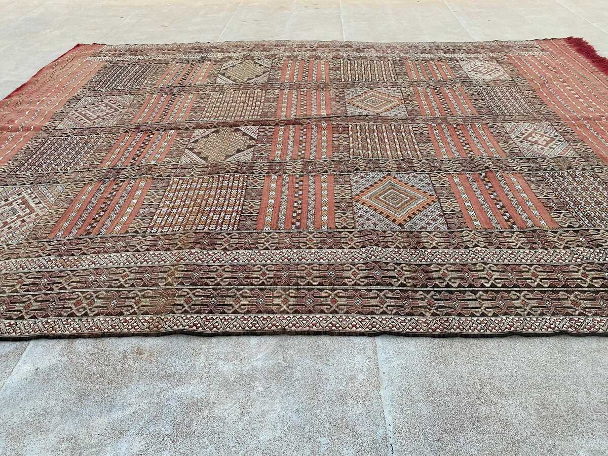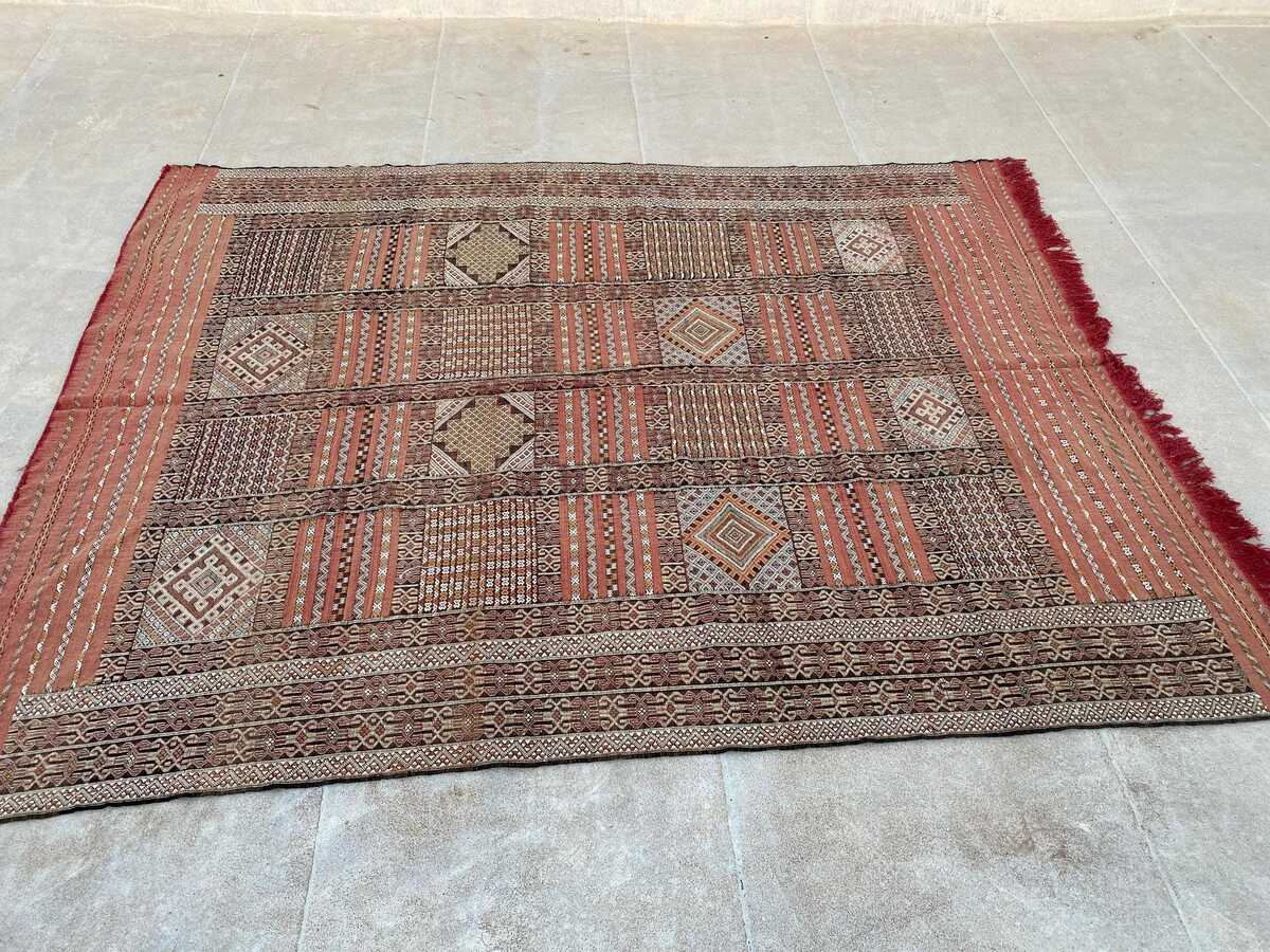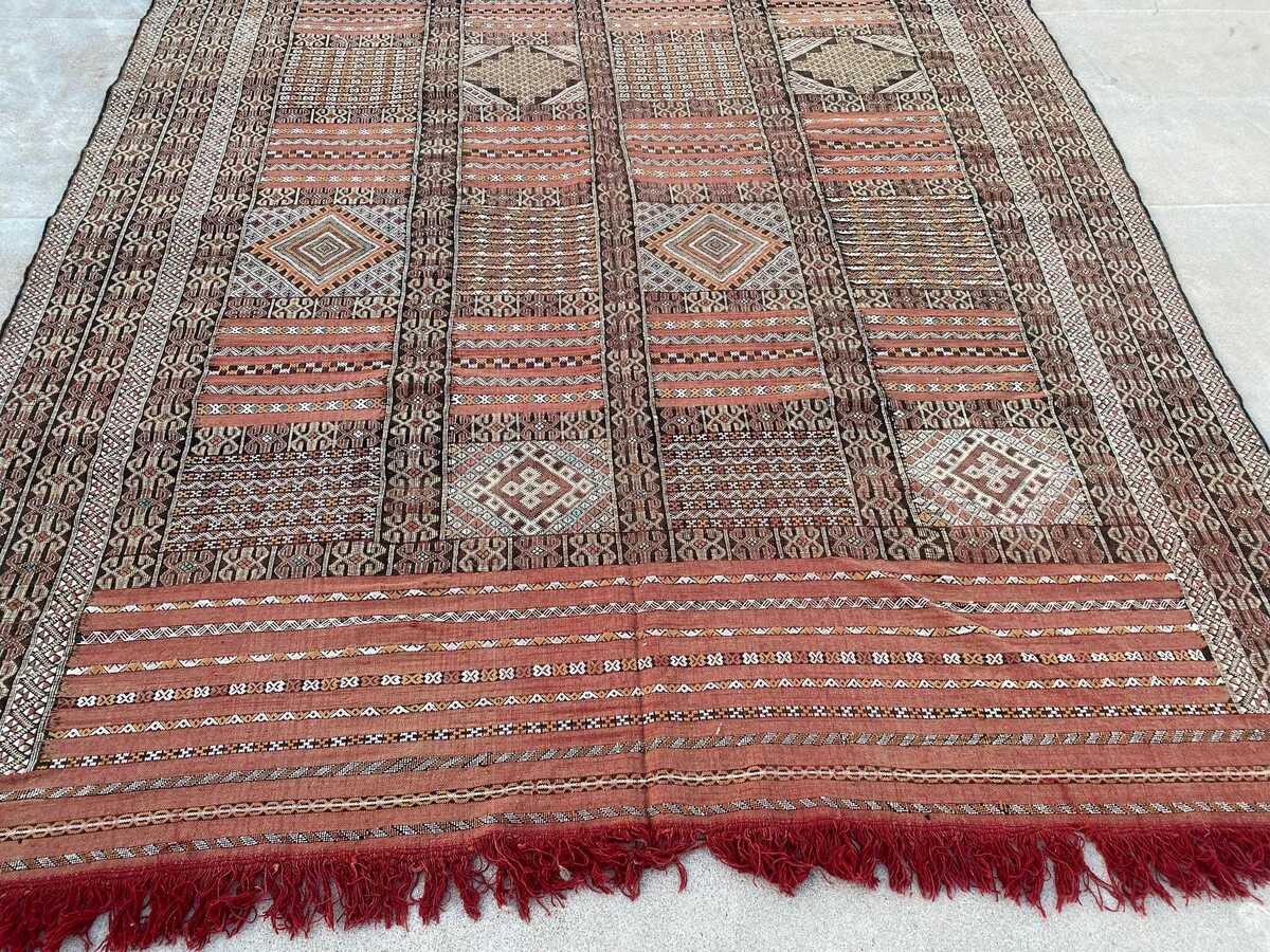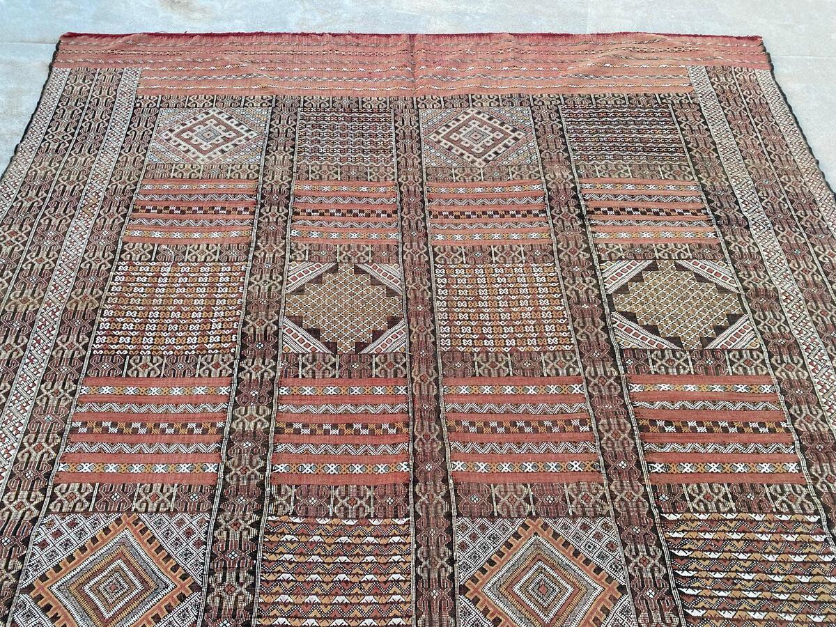 Large Tiflet Rug: Authentic Moroccan Berber Kilim, Handwoven Wool & Sabra Silk