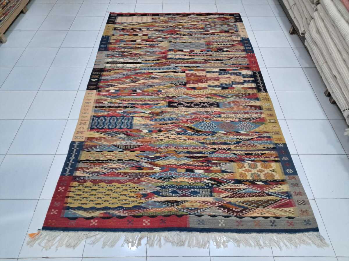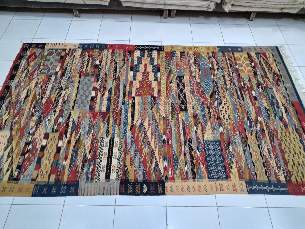 The tapestries are more than decorative pieces; they reflect the social and spiritual life of Morocco. Many of their symbols often represent natural elements such as the sun and stars or embody values including protection, fertility, and harmony. Each kilim is one-of-a-kind in its creation and reflects the vision and craftsmanship of the artisan who made it.