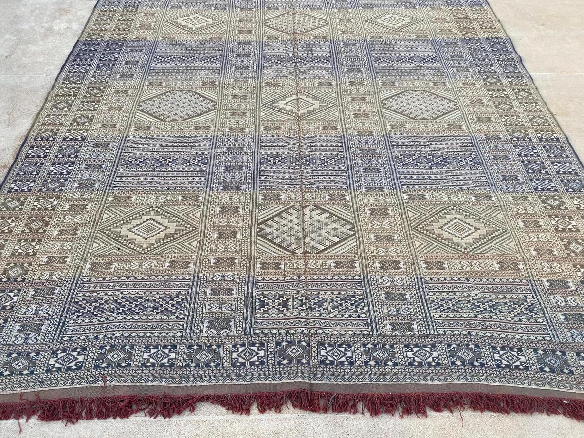 XL Handwoven Tifelt Kilim Rug: Moroccan Berber Wool, Geometric Design (264cm/431
