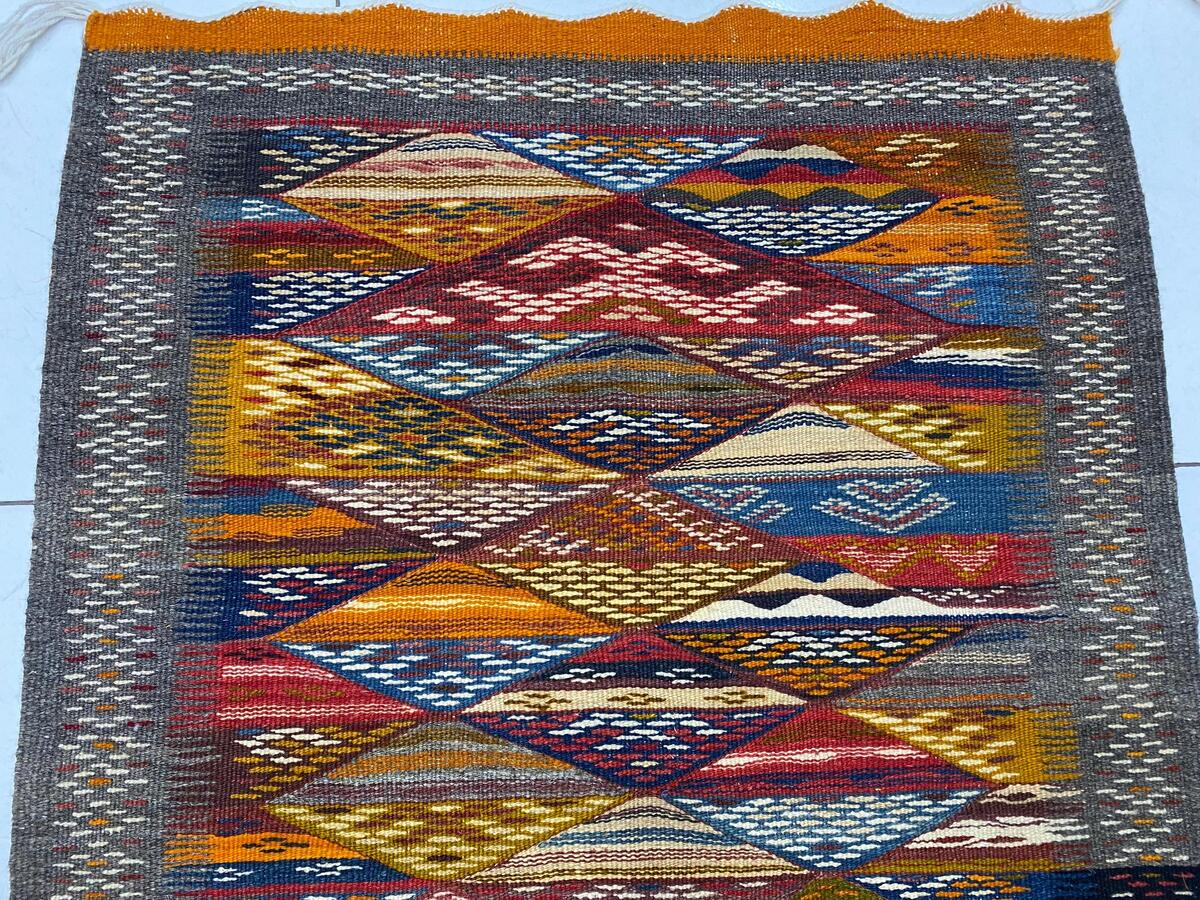 A kilim rug adds a unique touch to any room, encompassing simplicity and elegance. It invites you into a deeper look into Morocco's cultural tapestry while appreciating every thread and weave of detailed craftsmanship.