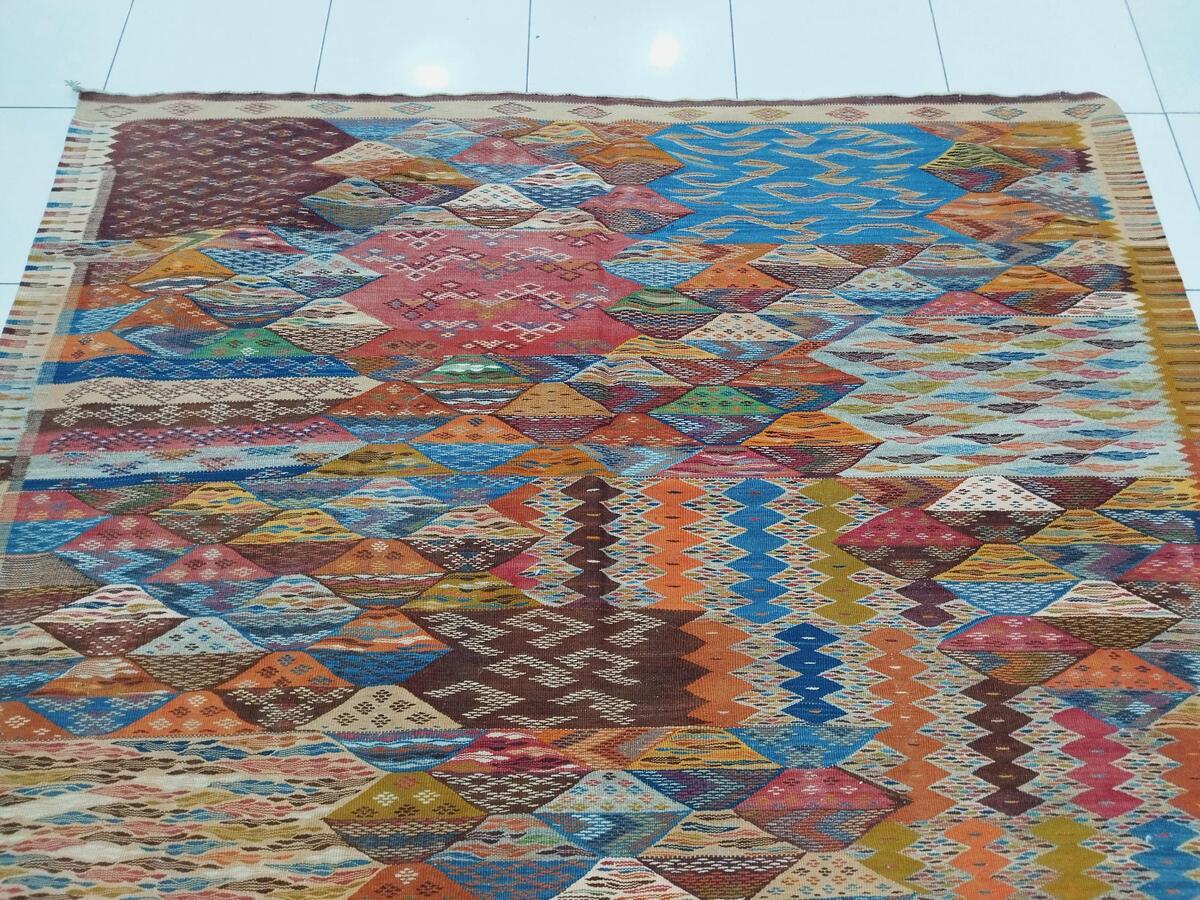 Kilim rugs can be used to decorate floors, adding a warm and cozy touch to any space, or hung on walls as a piece of art. They are also popular as furniture covers or even seating mats in outdoor spaces. Their flat design and lightweight nature make them easy to transport and maintain, making them both practical and stylish.