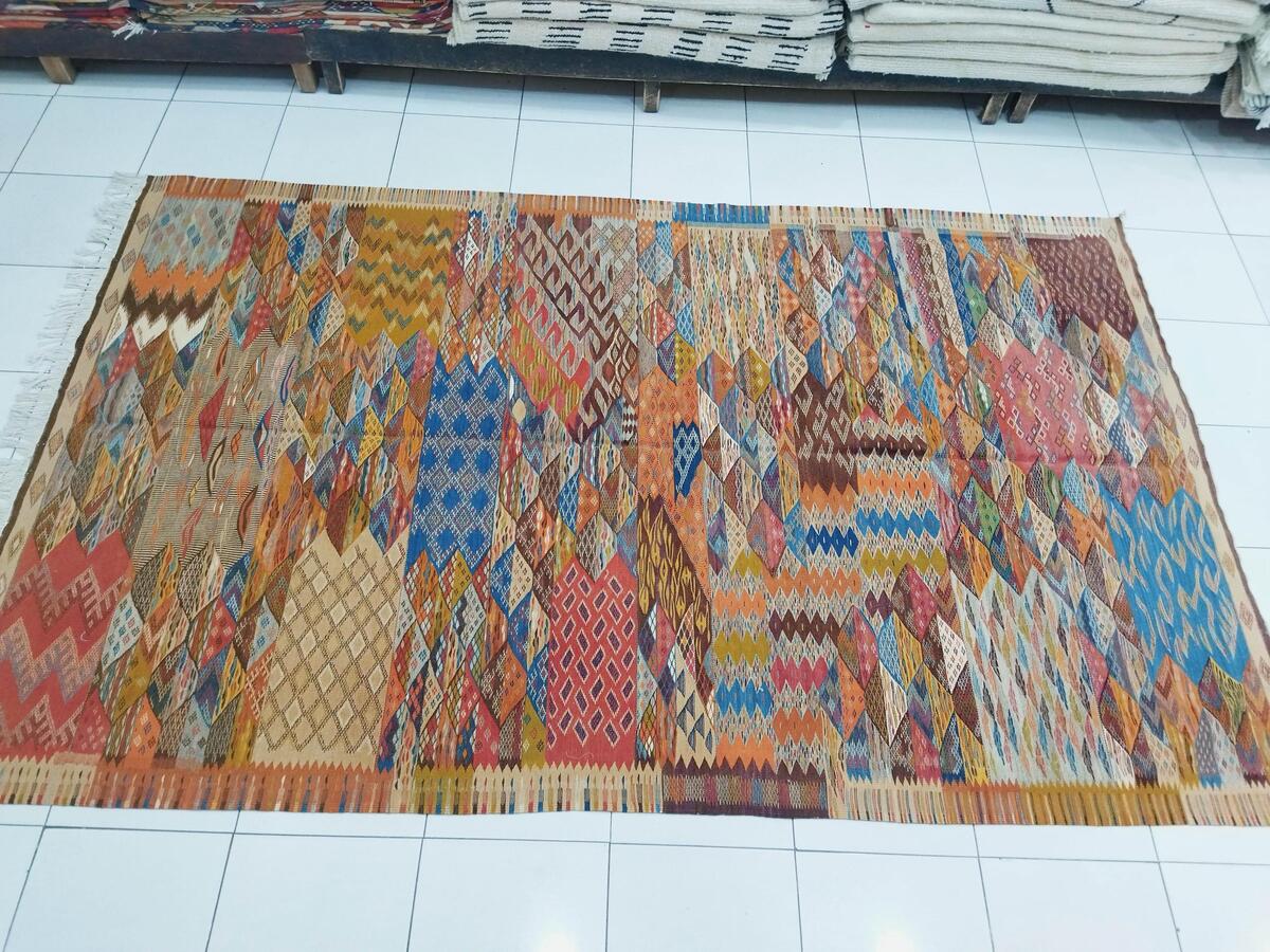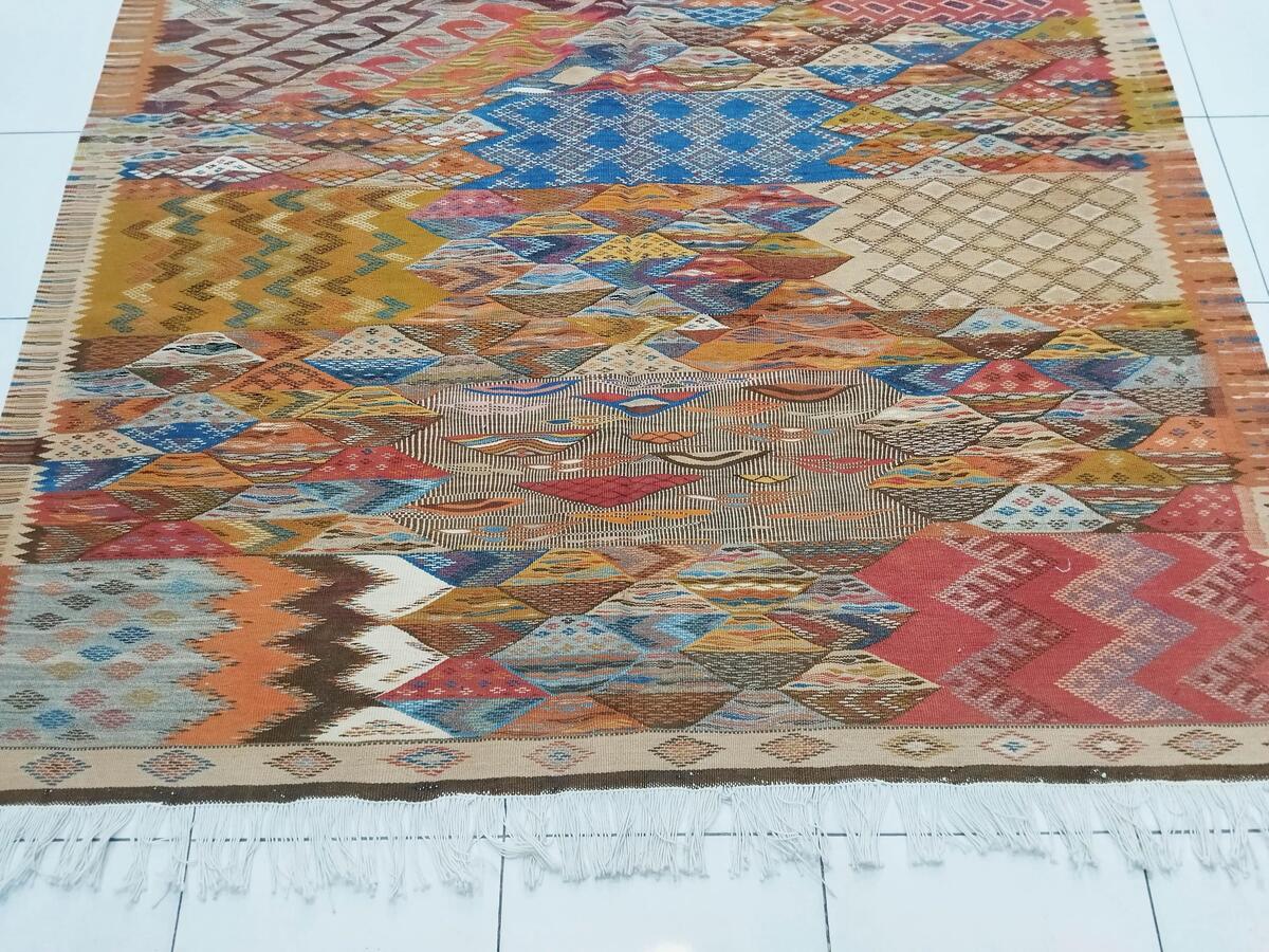 The rugs come in intricate geometric shapes like triangles, diamonds, interwoven lines, and symbolic signs, all carrying cultural and spiritual significance. The color gamut is bright and shining; the dominant colors include different shades of red, orange, yellow, blue, and white, often obtained using natural dyes such as saffron, indigo, and pomegranate skins. These colors and motifs are not only of aesthetic taste but carry stories originating from local traditions and environmental surroundings.