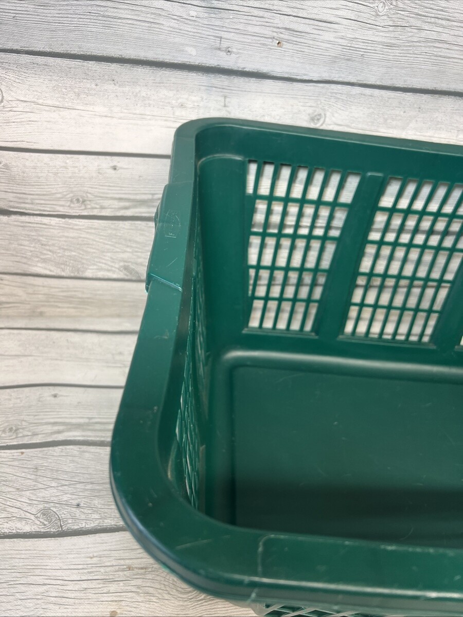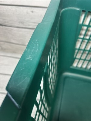 The product is a vintage Rubbermaid laundry basket with the model number 2965. It is a rectangular green hamper made of plastic, originating from the United States. This laundry basket is a durable and practical solution for organizing and transporting laundry, featuring the trusted Rubbermaid brand and a classic design that will complement any home decor.