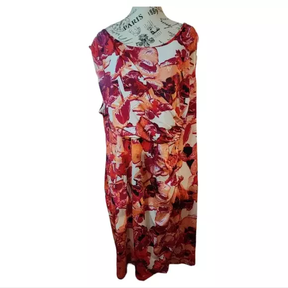 Dana Buchman Red/Cream Floral Dress Size 2X-Large