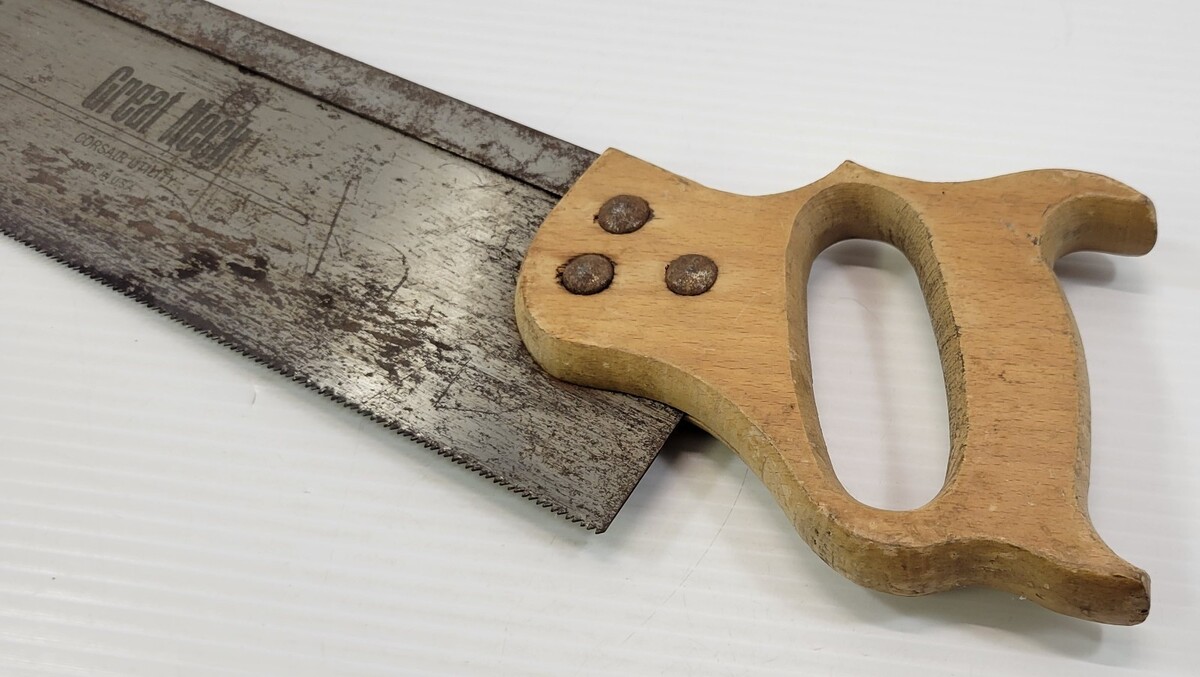 *J1) Vintage Great Neck Corsair Utility 14" Mitre Hand Saw Wooden Handle