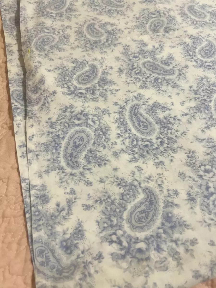 MYTEX Vintage Victorian Paisley Blue Cotton Queen Flat Sheet