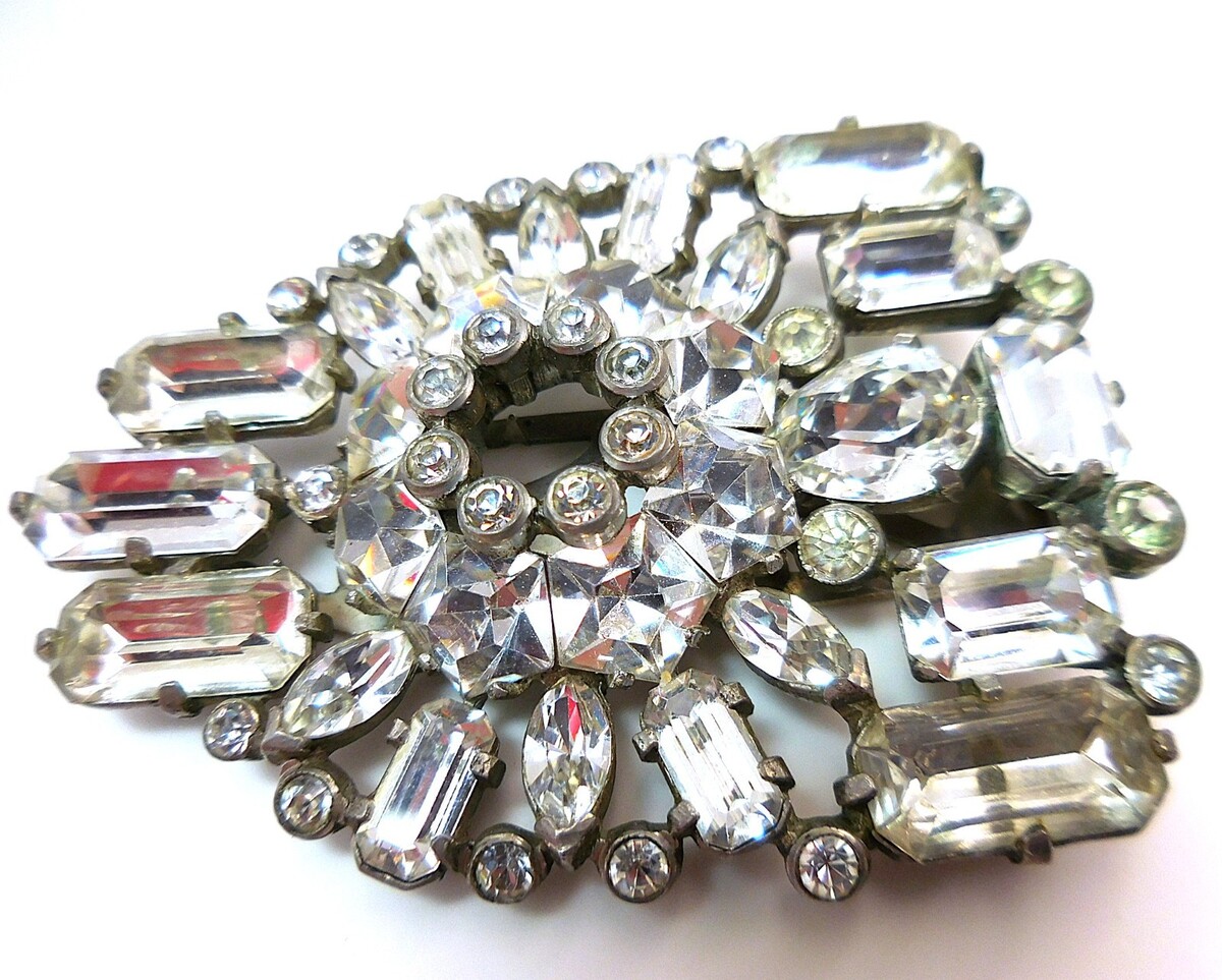Large Eisenberg Originals 1940s Fur Clip – Rare Star‑Cut Rhinestones