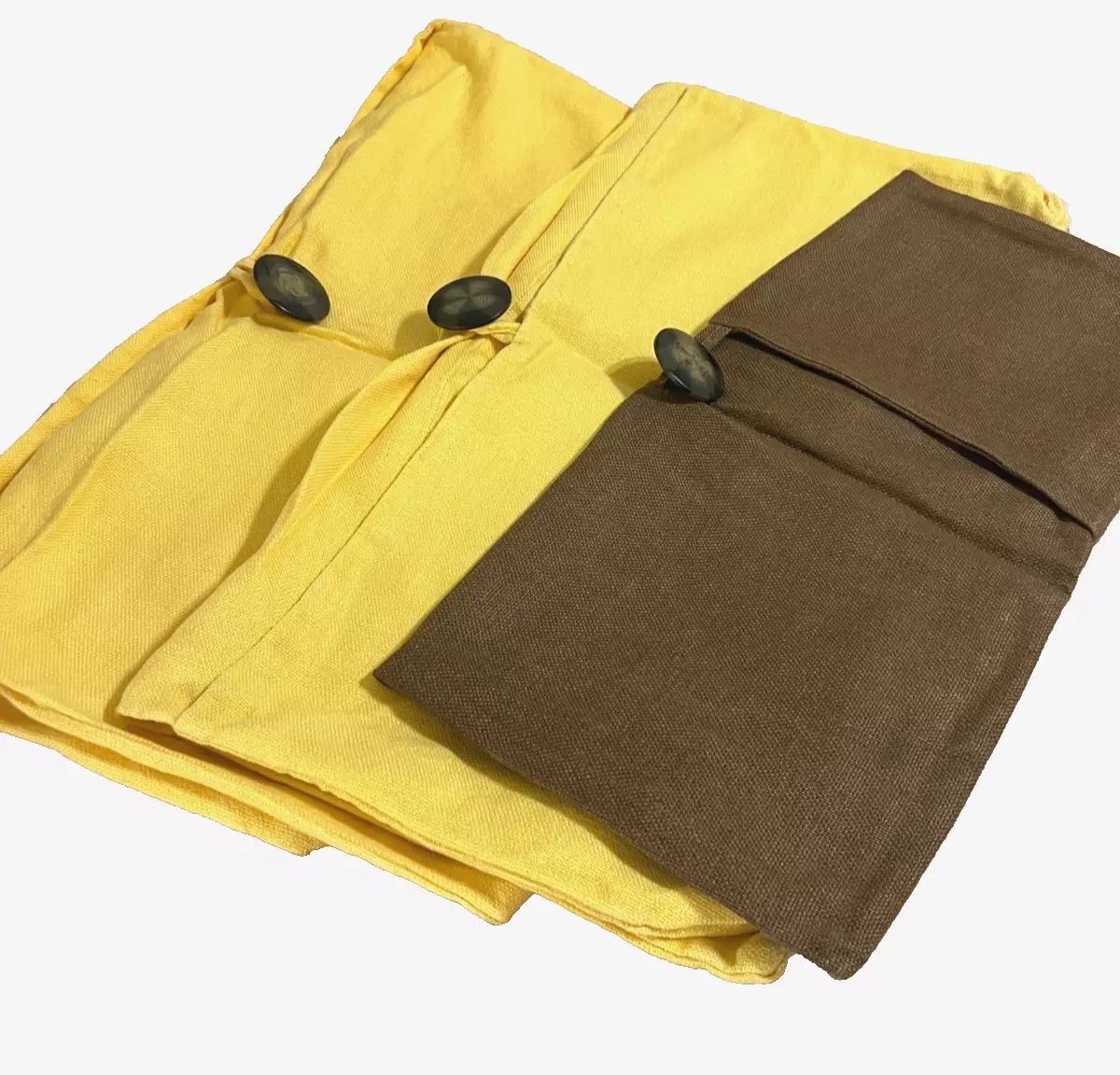 Pottery Barn Textured Linen 3pc Yellow and Brown Buttoned Pillow Covers