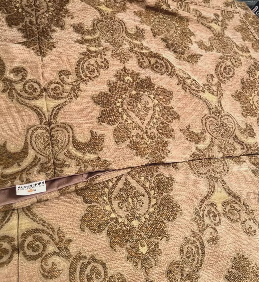 Its jacquard fabric has a unique texture in a bronze gold/copper-tone that will complement any room.