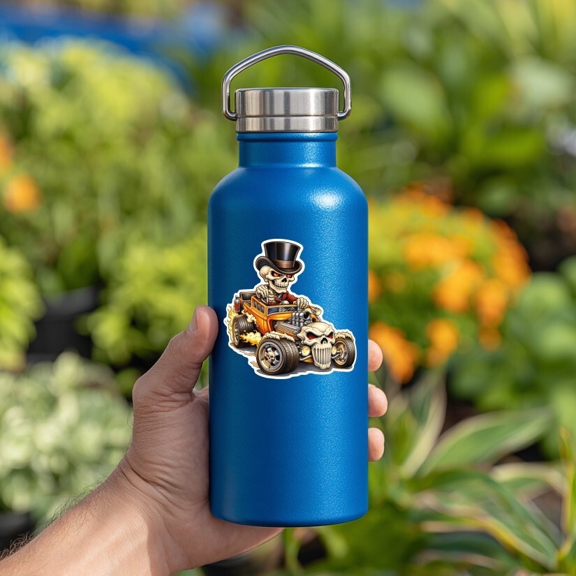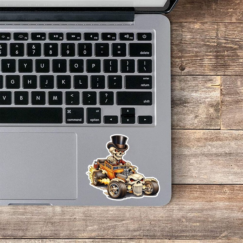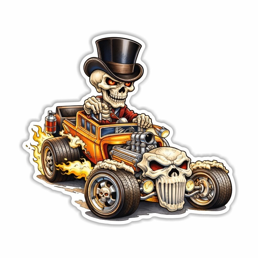 Hot Rod Skull Driver Sticker Vintage Rat Rod Skeleton Car Peel N' Stick