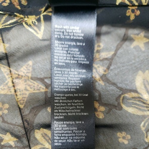 Machine wash gentle, do not tumble dry, iron gently while still warm/damp. Do not dry-clean and avoid contact with perfumes