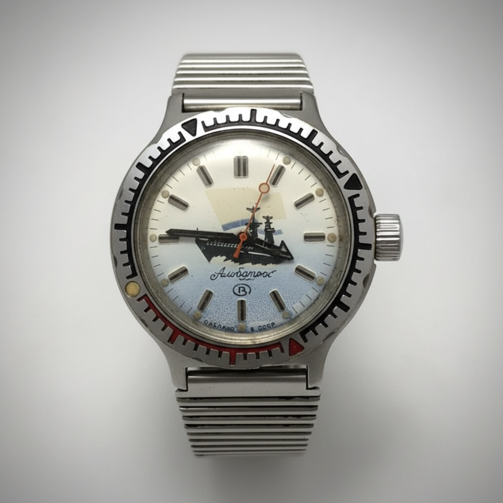 Men's Mechanical Watch in Stainless Steel ? Submarine Motif Dial | Vintage USSR Era