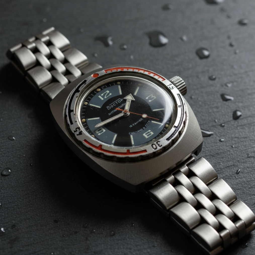Vintage Mens Watch Vostok Amphibia Sector Dial Barrel Case USSR 18 Jewels 163