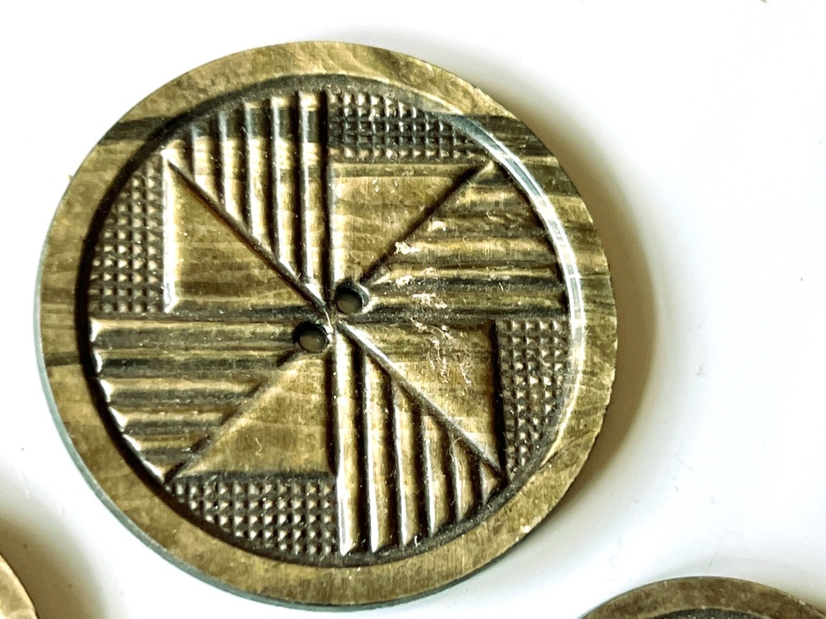 4 Antique VTG Celluloid wafer Art Deco Green Buttons 1 XLarge 1 7/8”+ 3- 1 3/8"