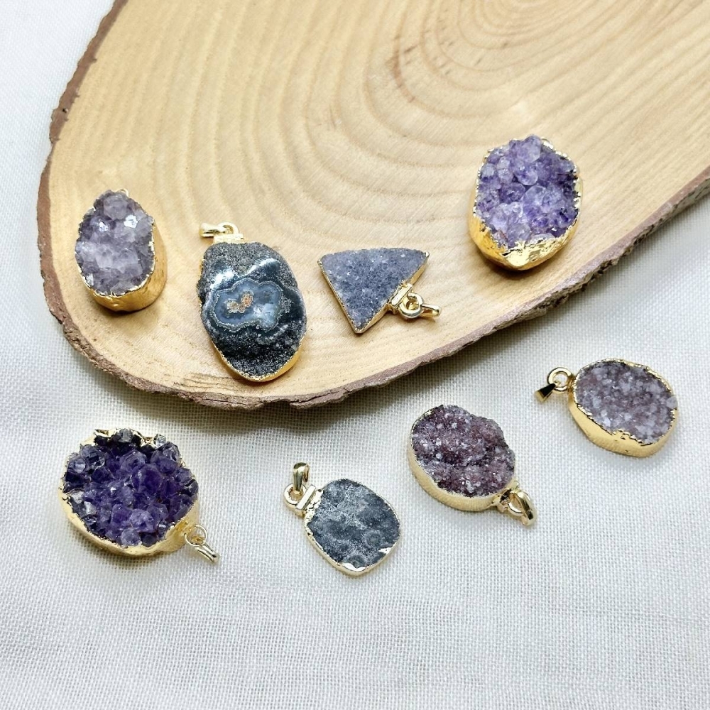 Bring the healing energy and mesmerizing sparkle of natural quartz to your jewelry designs. These Amethyst Druze Pendants feature authentic crystal clusters, showcasing the deep purples and glittering points that only nature can create. Perfect for statement necklaces, meditation jewelry, or luxury artisan collections.