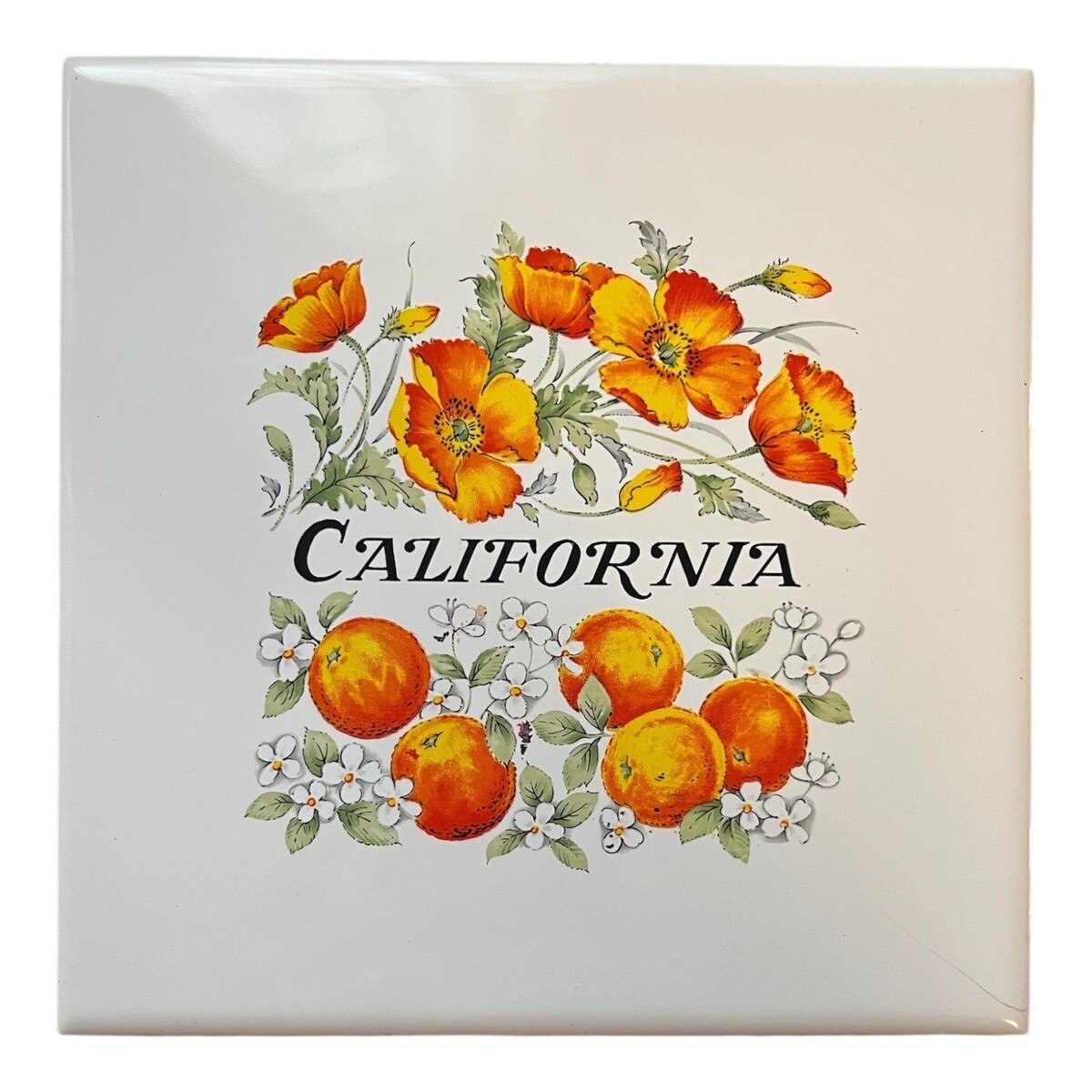 Vintage Ceramic Tile Trivet Set California Oranges Peggy’s Kitchen Floral 6 Inch