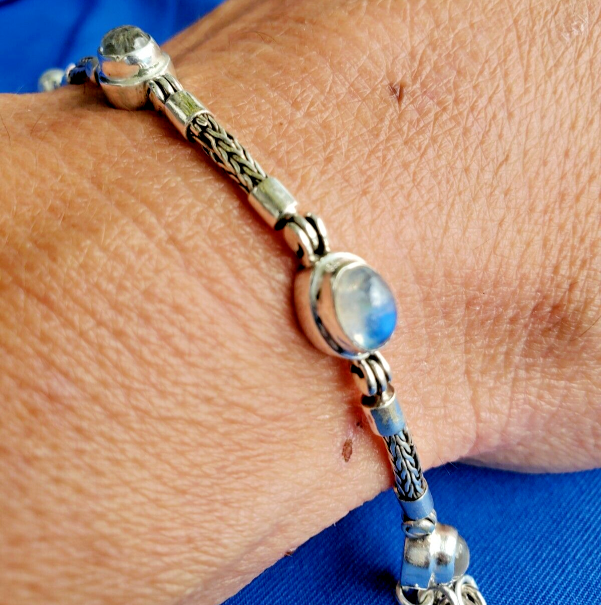 Moonstone Byzantine 925 STERLING SILVER Bracelet Woven Braided Chain 7.5" in USA