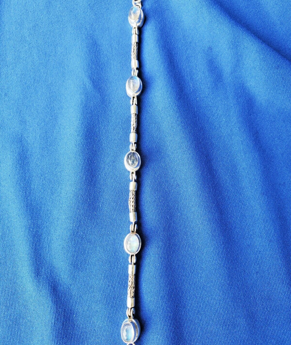 MOONSTONE STERLING SILVER WOVEN CHAIN ORIGINAL FLEXIBLE BRACELET.