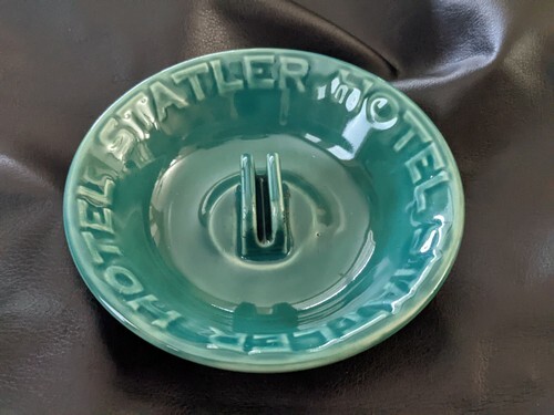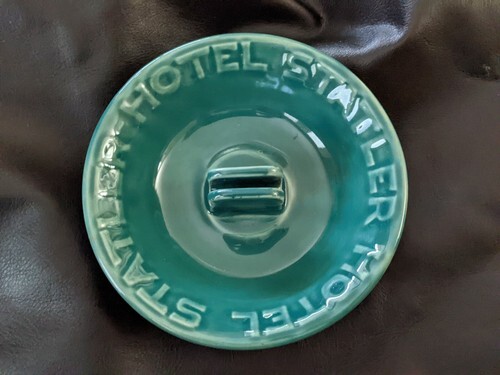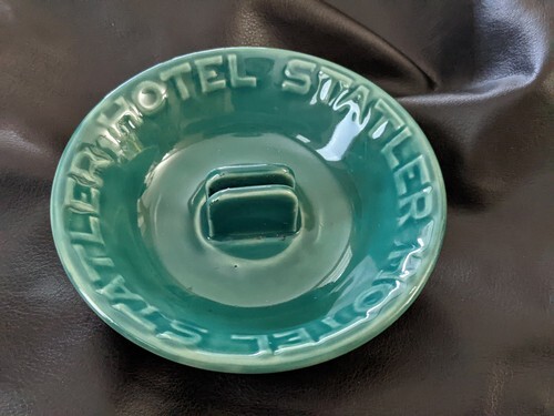 1940s Hotel Statler New York Mid Century Teal Blue Art Pottery Ashtray Stand