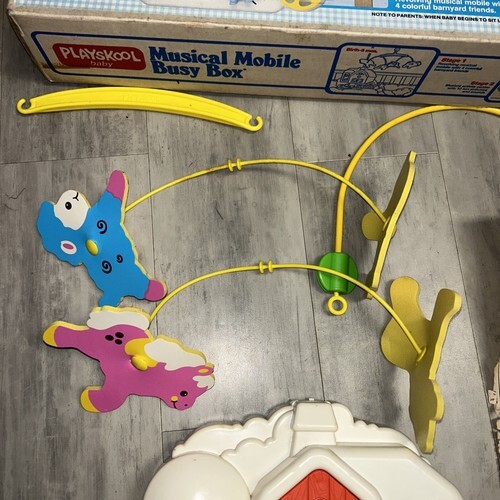 Playskool Musical Mobile Busy Box Farm Nursery Crib Toy Two Stage with Box