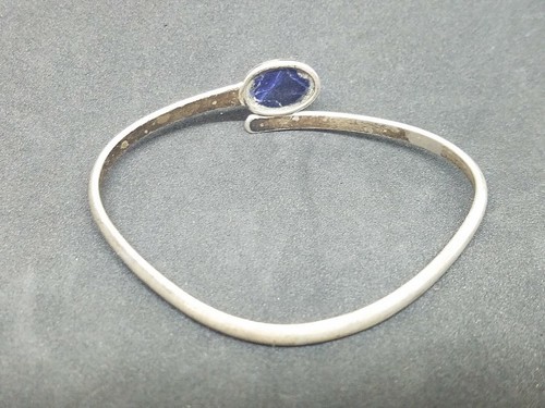 Up for sale is a used vintage 925 Sterling Susan Roggio Bangle Bracelet with blue stone. The bracelet measures 2.5 inches in diameter and will fit a wrist of 7 inches. incident_data